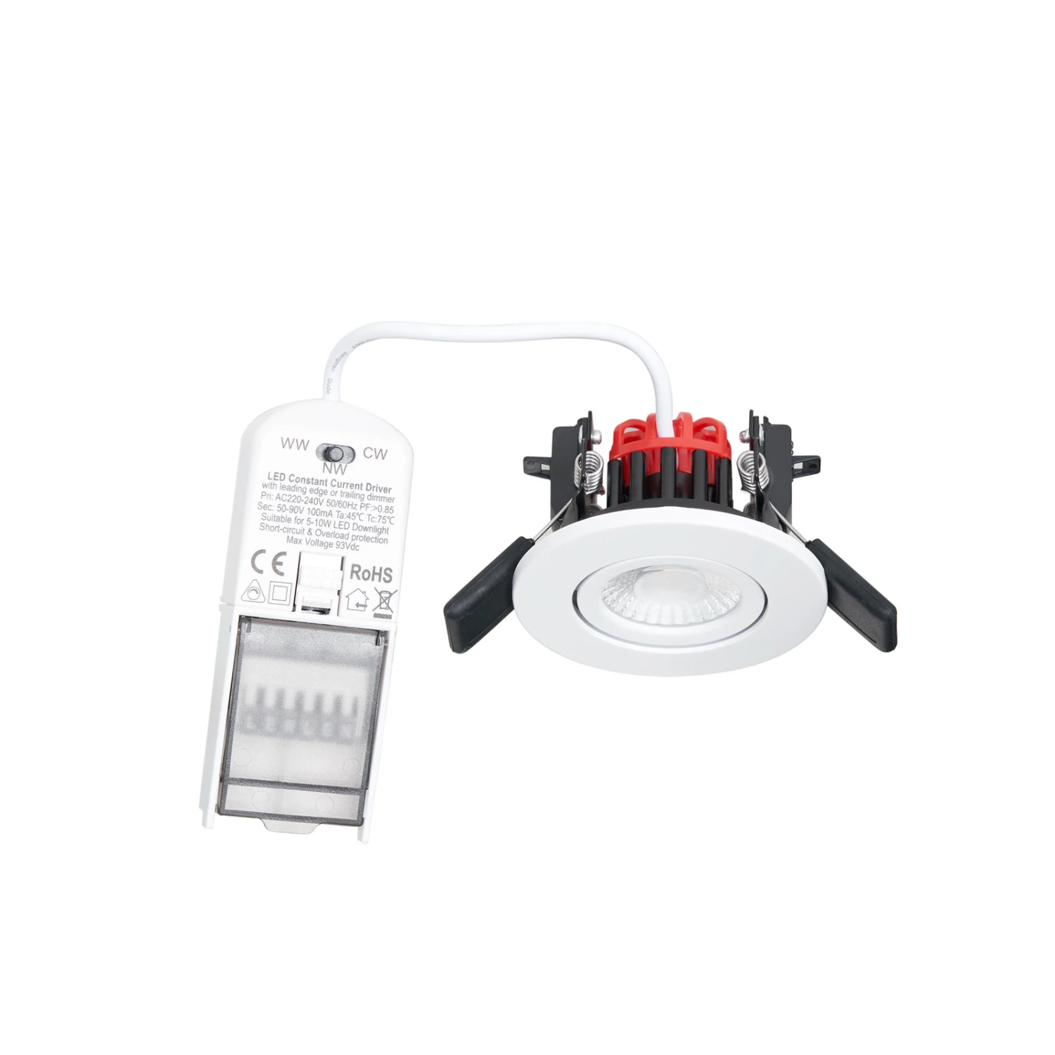Cyrian est un diffuseur de lumière adapté aux pièces humides qui peut être utilisé sans problème dans les salles de bains et autres pièces humides grâce à son degré de protection élevé (à l’état encastré). Sa surface blanche et sa forme ronde lui donnent un aspect très intemporel qui s’intègre bien dans de nombreux plafonds. L’insert pivotant permet de déplacer la source lumineuse jusqu’à 30 degrés et l’angle de diffusion de la lumière, de 60 degrés, n’est ni trop plat ni trop spot, mais convient bien à un éclairage approprié autour de la maison. En outre, le luminaire encastré avec ses LED claires et efficaces est également facile à faire varier, que ce soit avec un variateur à coupure de phase ou un variateur à coupure de phase. Le spot encastré est donc un distributeur de lumière très attrayant et peut être utilisé non seulement à titre privé, mais aussi à titre professionnel. Il est alors recommandé d’installer plusieurs luminaires en ligne afin d’éclairer efficacement l’environnement.