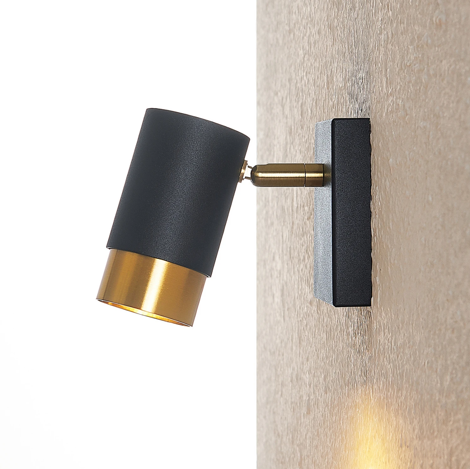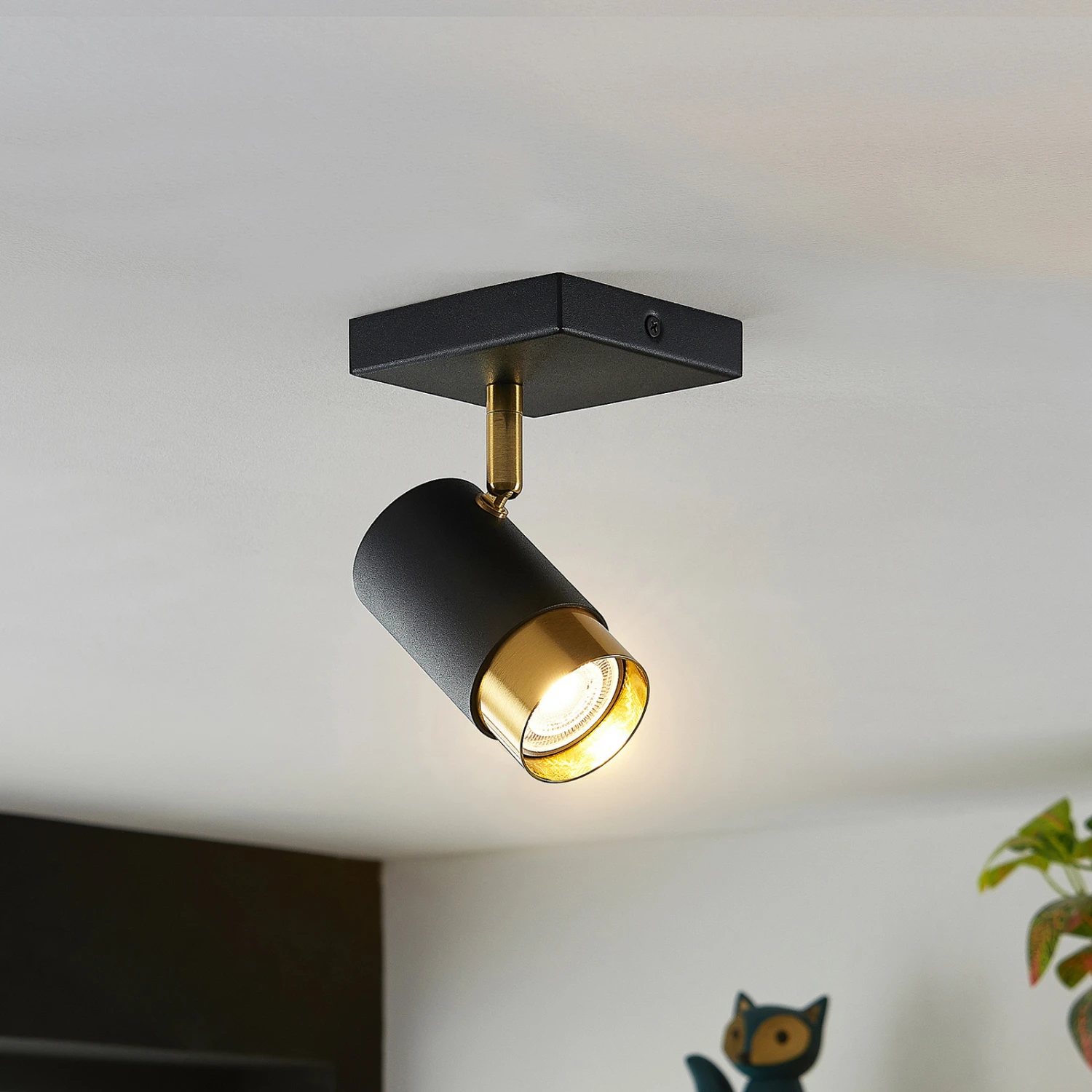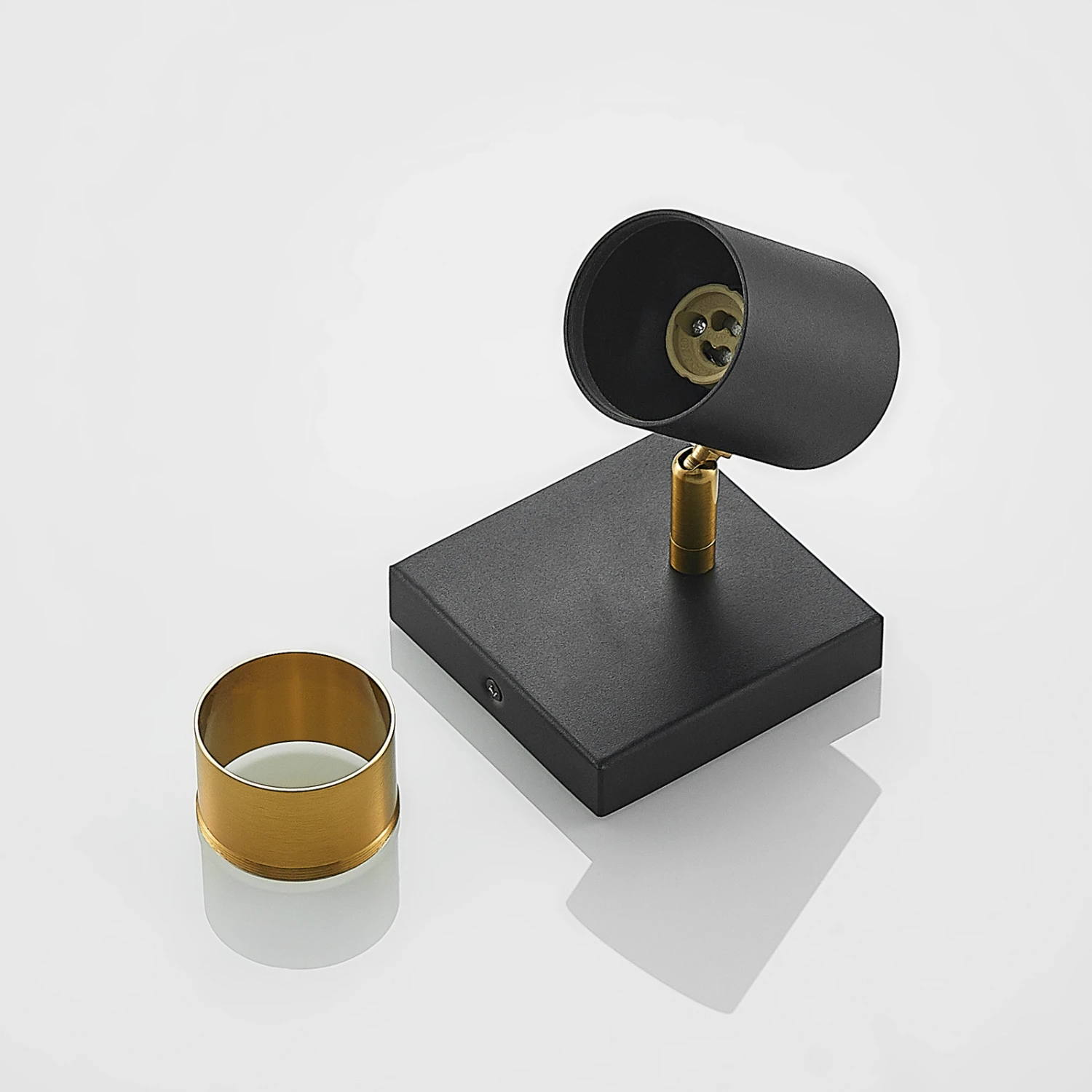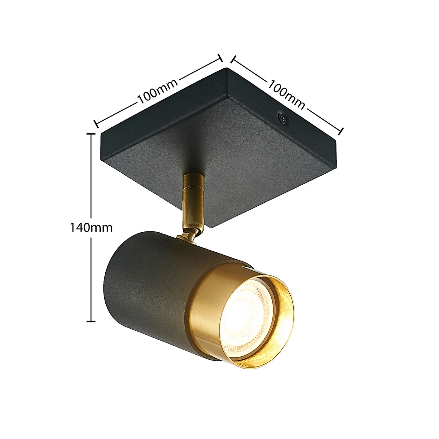 Le spot Evaro se démarque habilement de son environnement grâce à son design noir et doré. Le support de plafond carré forme un contraste géométrique avec le spot cylindrique. Celui-ci peut être tourné et incliné si nécessaire, ce qui permet de mettre en scène certains objets de manière ciblée. Ce spot peut être fixé aussi bien au plafond qu’au mur et trouvera certainement une application dans le domaine commercial.