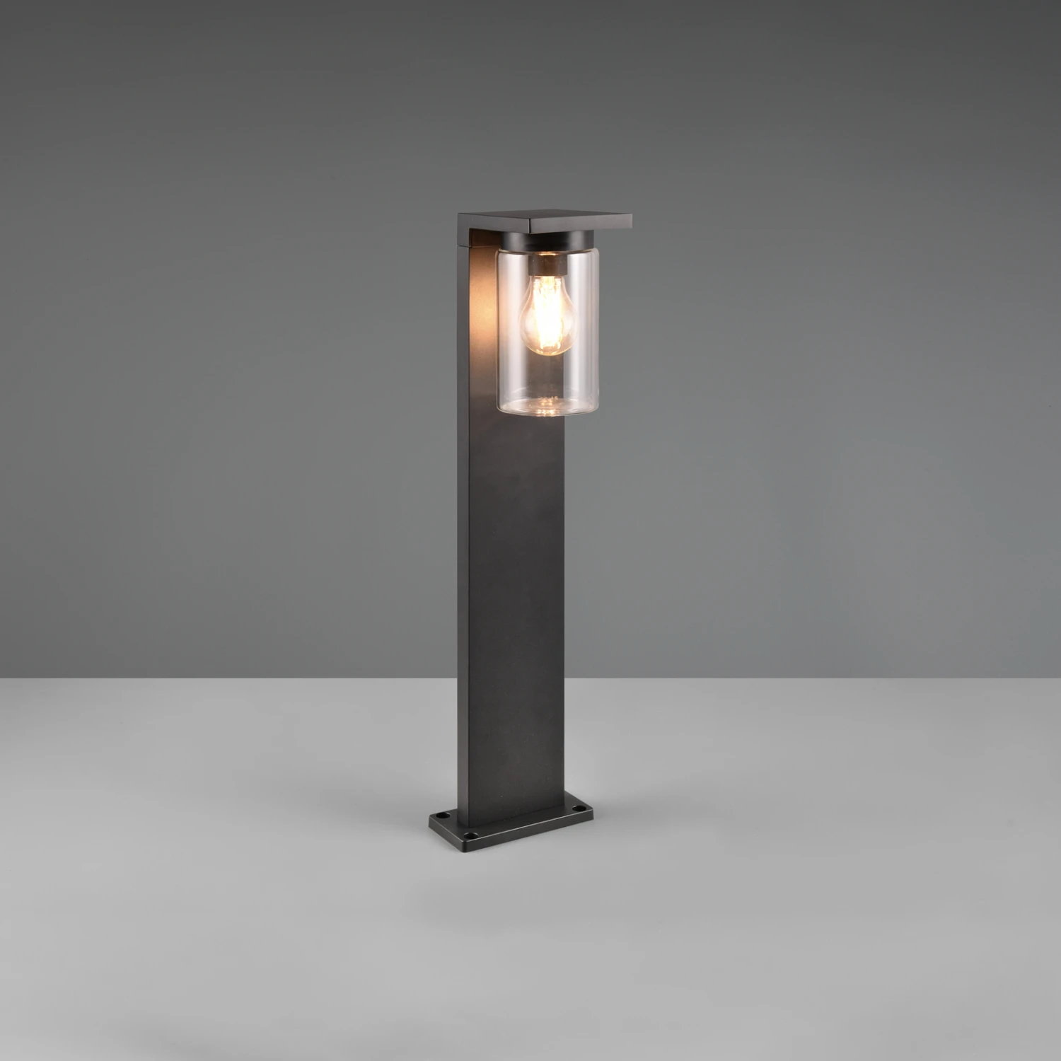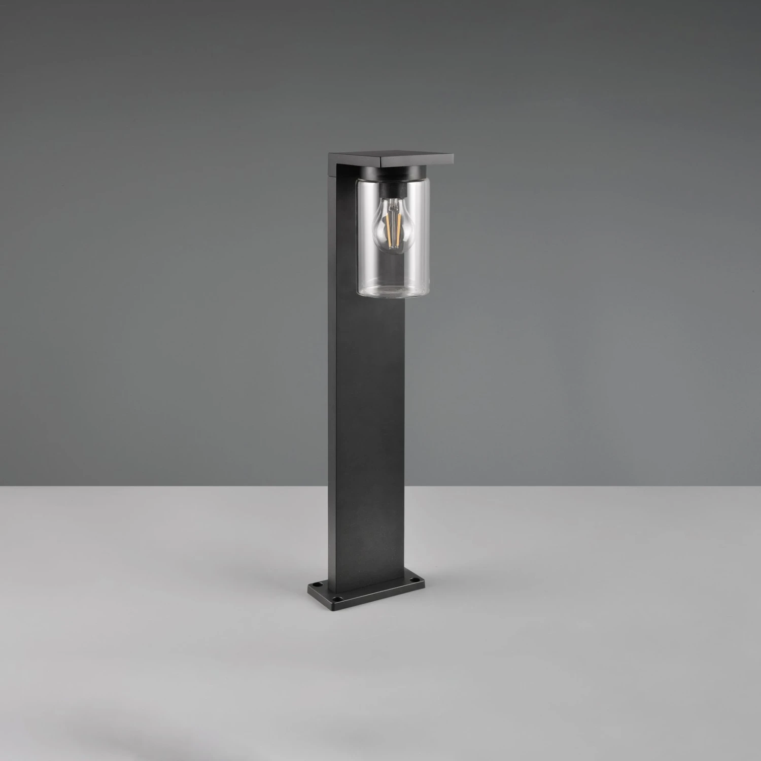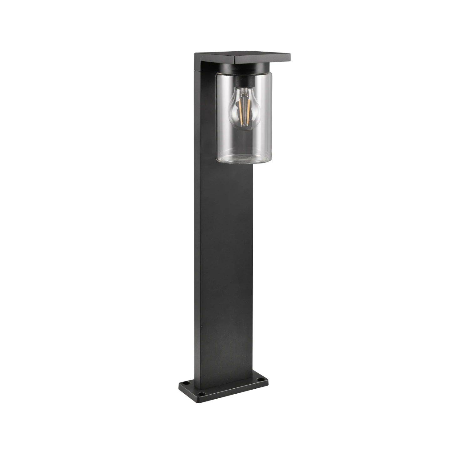 Der Schirm der Wegeleuchte Ardila wird aus klarem Glas gefertigt. Daher empfiehlt sich der Einsatz einer E27-Lampe mit sichtbaren Filamenten. Passende Leuchtmittel sind über das Zubehör separat erhältlich. Das Gehäuse besteht aus Aluminiumdruckguss und ist in einem matten Schwarz lackiert. Ardila ist gegen Spritzwasser geschützt und kann somit im Außenbereich verwendet werden. Der integrierte Dämmerungssensor lässt sich über einen Schalter am Gehäuse ein- und ausschalten.