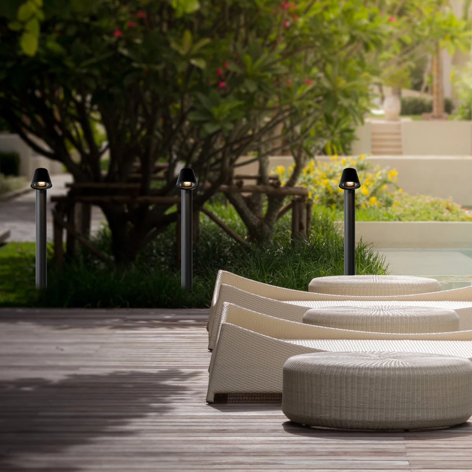 Dans les espaces extérieurs de conception moderne, le luminaire LED Dingo peut être monté pour éclairer les terrasses, les allées, les chemins, etc. La lumière blanche chaude est émise avec un angle de faisceau de 40° vers le bas, de sorte que les allées, les escaliers et les allées de la propriété sont parfaitement éclairés. Fabriqué en aluminium et en verre, le luminaire est équipé d’une ampoule LED GU10 extrêmement économe en énergie et durable, qui peut être remplacée.