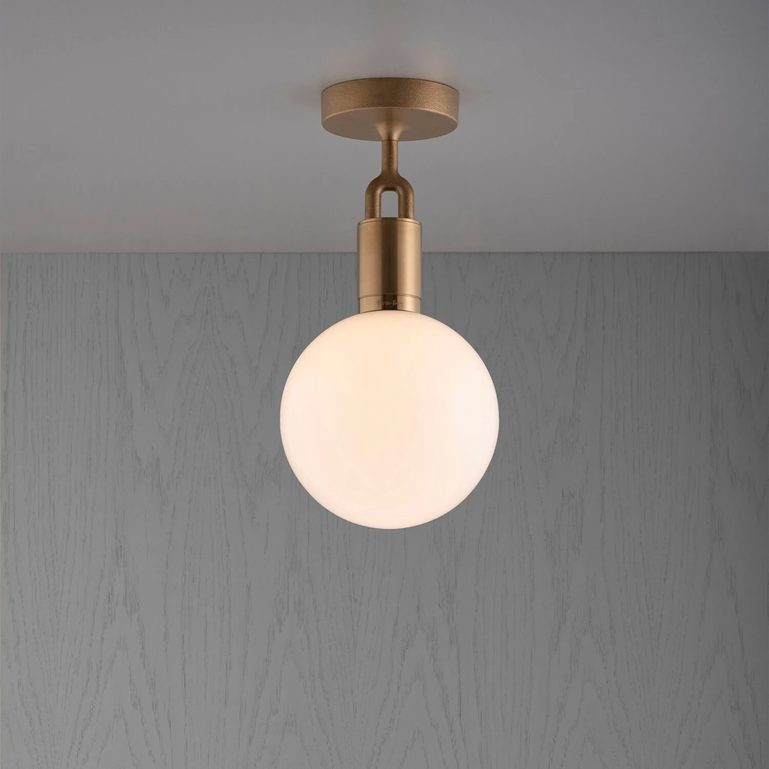 Plafonnier Forked avec détail en laiton et abat-jour en verre soufflé à la boucheLe plafonnier Forked est fabriqué en laiton massif avec un motif moleté fin sur la douille, caractéristique de Buster Punch, un détail de câble ennobli à la main et un abat-jour en forme de boule en verre soufflé à la bouche qui y est fixé. Il est livré avec une ampoule LED à intensité variable avec culot E27. Le plafonnier Forked est un produit du label anglais Buster Punch, une entreprise fondée à Londres en 2013 et dont l’amour des métaux massifs transparaît dans chacun de ses produits. Outre les luminaires, Buster Punch fabrique également des ferrures fonctionnelles et des objets d’ameublement et collabore avec des artistes de rue, des fabricants de vélos et des créateurs de mode issus des scènes londoniennes de la mode, de la musique et de la sous-culture