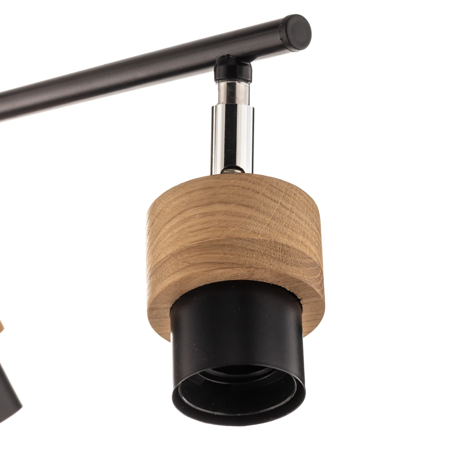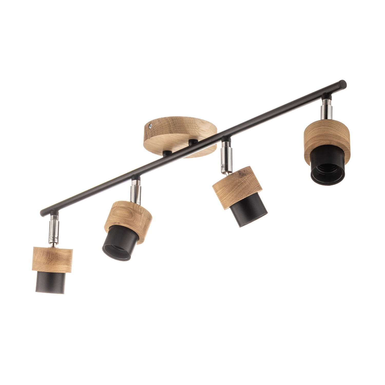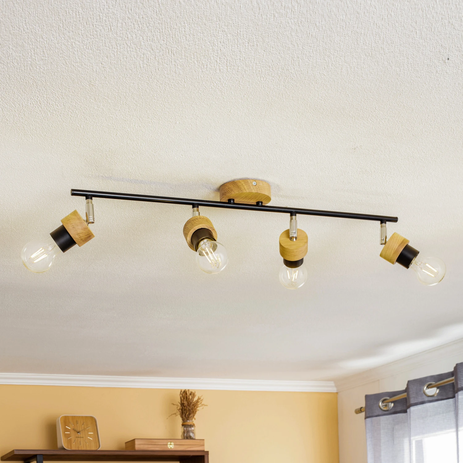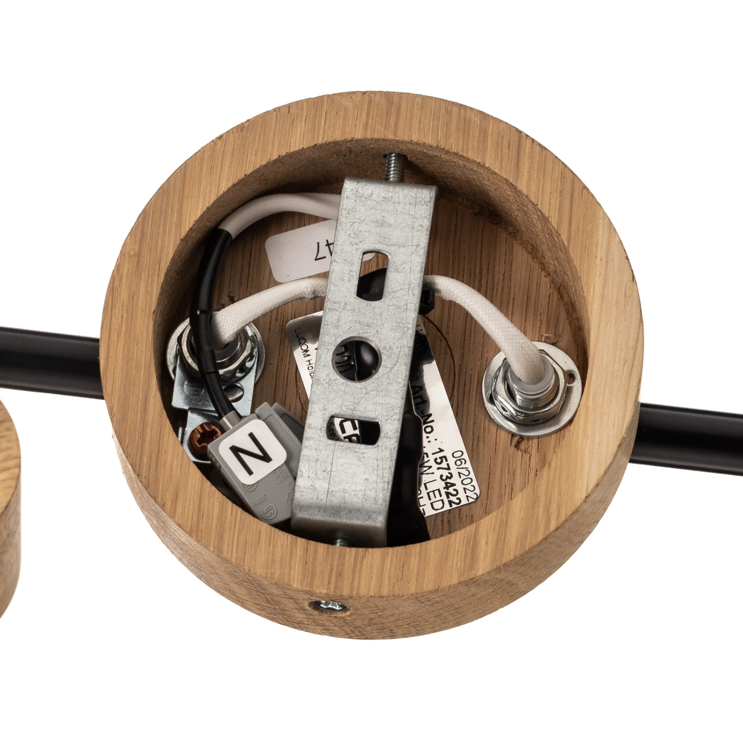 Plafonnier à quatre lampes Merlo en design ouvert – chêne clair et métal noir