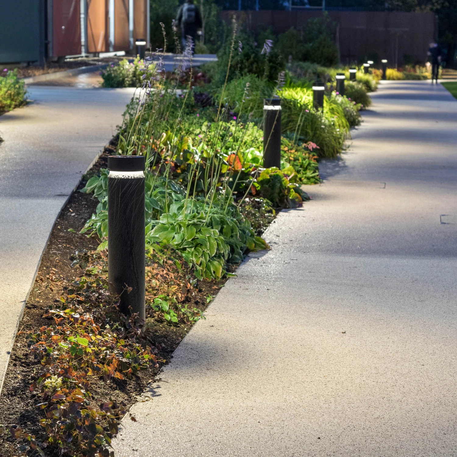 Le luminaire d’allée à LED Castor, fabriqué en aluminium thermolaqué, prend la forme d’un simple cylindre en graphite. La partie supérieure est pourvue d’un évidement sur tout le pourtour ; les LED haute puissance y sont intégrées. Leur lumière est émise en oblique vers le bas à travers un anneau de guidage de lumière de 360° en polymère optique, ce qui permet d’éclairer la surface du sol de tous les côtés.