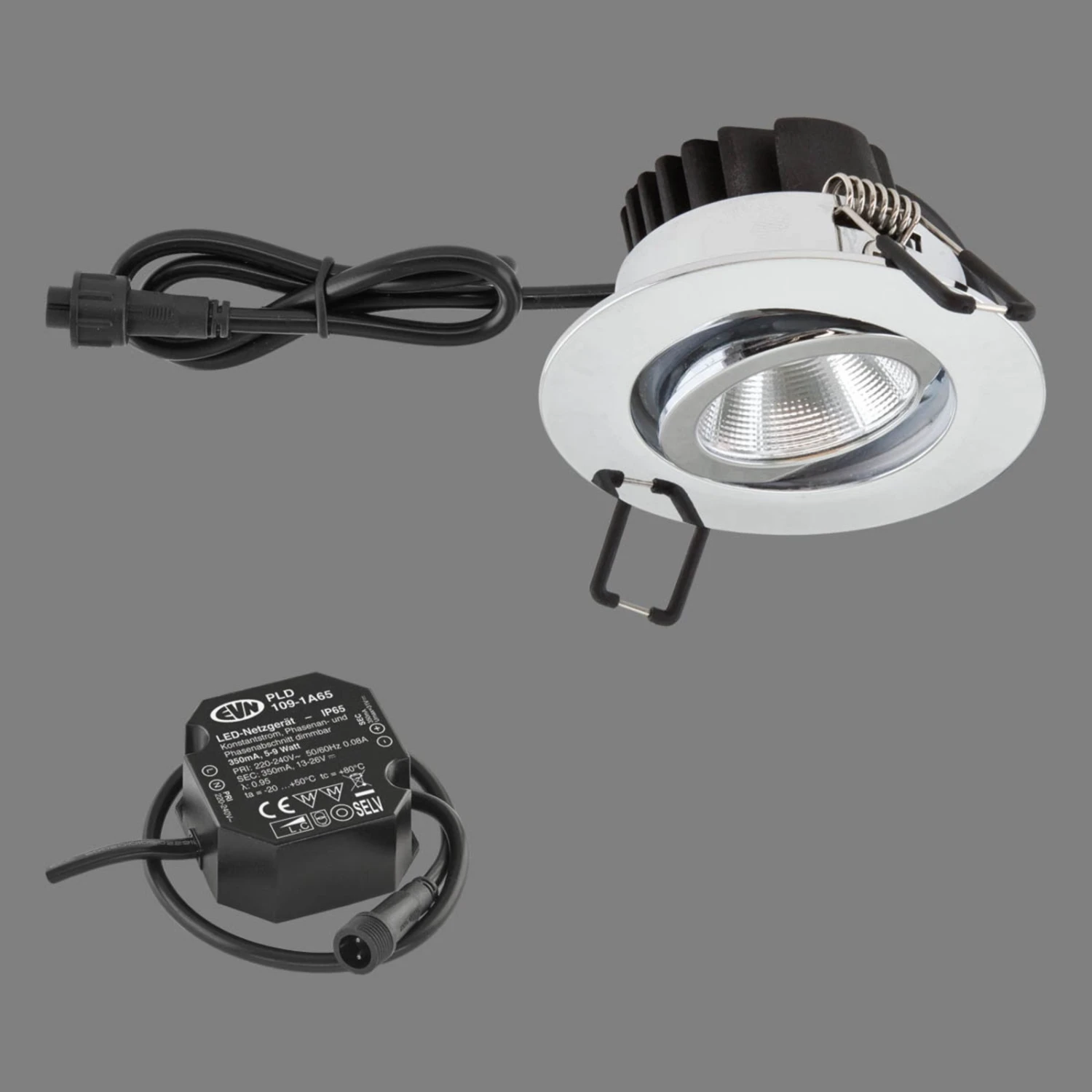 Grâce au type de protection IP65 (protection contre les jets d’eau et étanche à la poussière), il peut être utilisé sans problème dans les pièces humides et à l’extérieur. Le luminaire encastré à LED PC65 émet une lumière blanc chaud grâce à sa puissante puce LED et éclaire ainsi l’entrée, les passages dans la cour et les terrasses ou peut être utilisé de manière ciblée comme spotlight pour un éclairage d’effet.