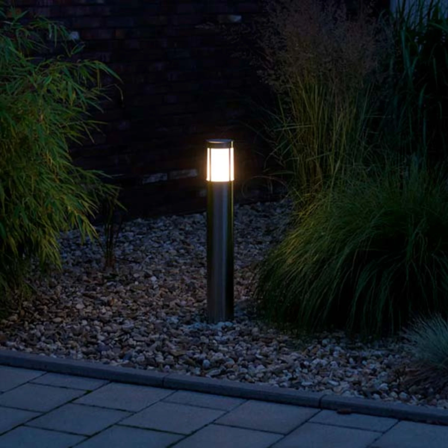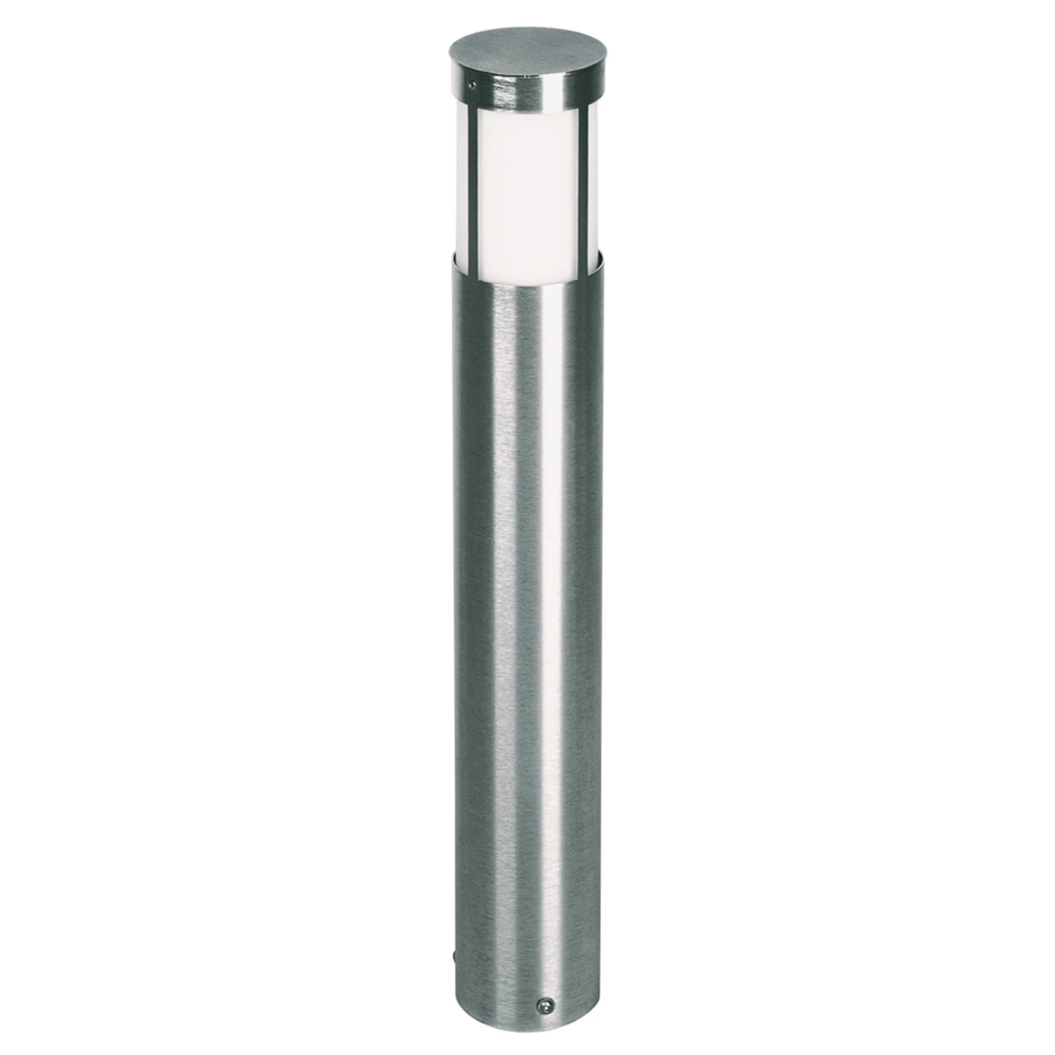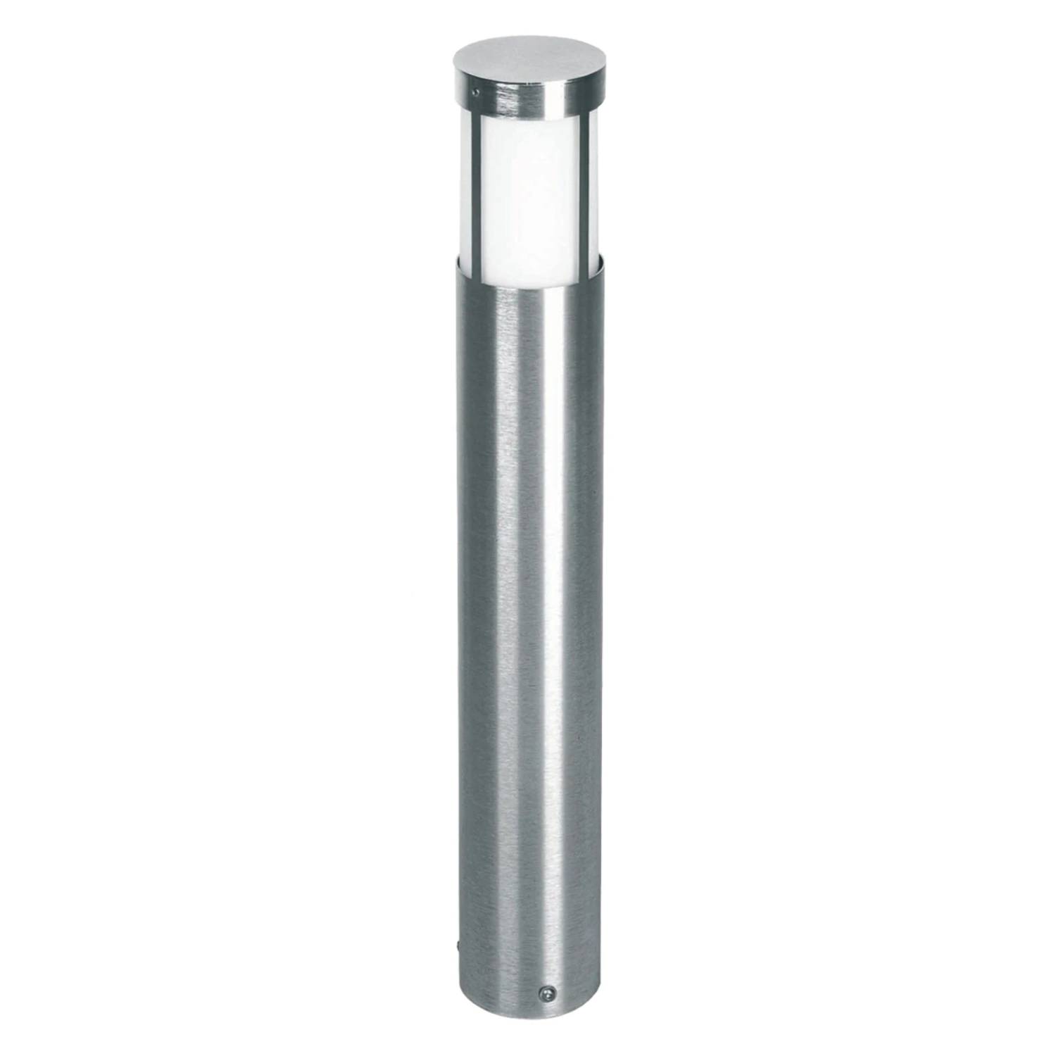 Une borne lumineuse argentée qui brille de jour comme de nuit. La borne lumineuse Primo se compose d’une structure en inox et d’un verre opale. Primo peut être fixée sur une fondation ou directement au sol à l’aide d’un boîtier d’encastrement disponible dans la section Accessoire. Les ampoules à incandescence A 60 peuvent être remplacées par des ampoules à basse consommation avec le culot E27.