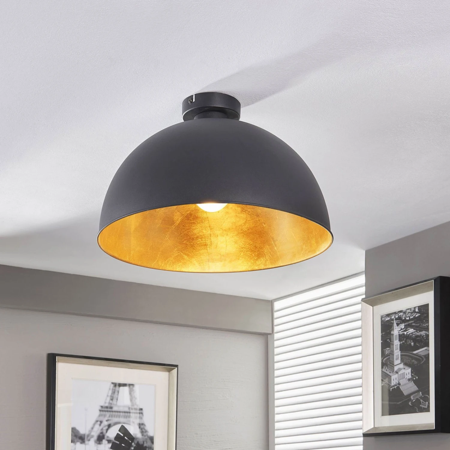 Plafonnier noir-doré Lya avec sortie de lumière principalement indirecte