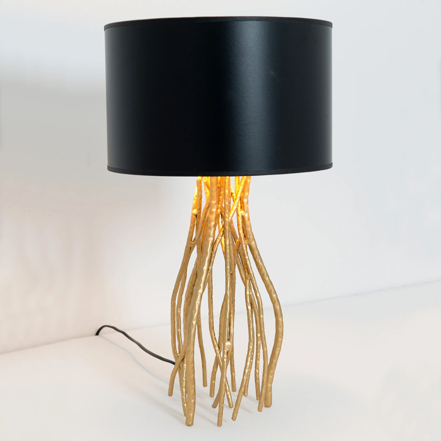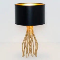 La lampe de table Capri séduit par son design extraordinaire, dont la forme rappelle celle d’un animal marin. L’abat-jour noir est doré à l’intérieur et recouvert de noir à l’extérieur, ce qui donne à la lampe un effet très contrasté.