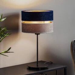 Lampe à Poser Duo Bleu Marine/gris/doré, Haut 50cm