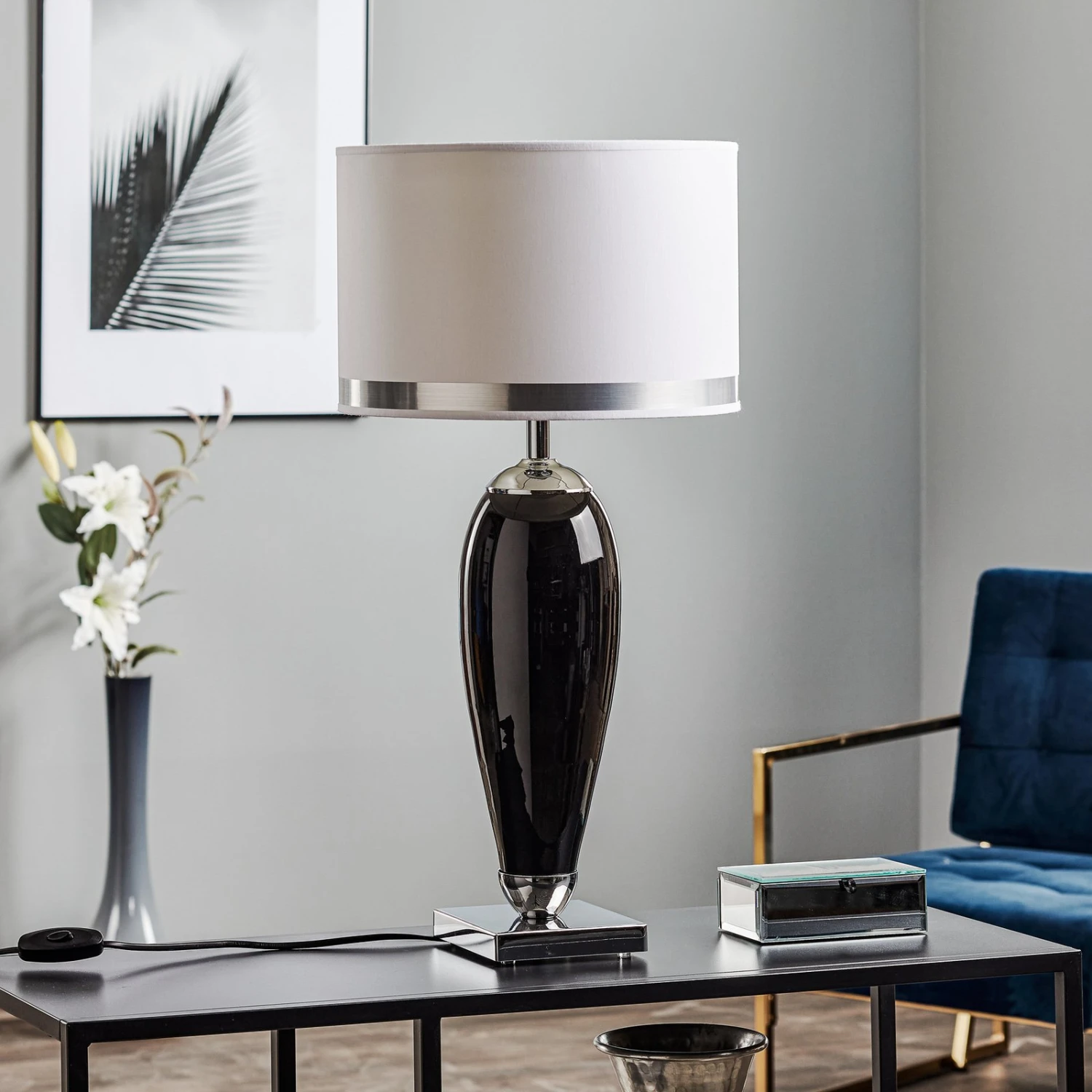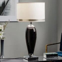 Lampe à Poser Lund Blanche Et Noire, Hauteur 60 Cm