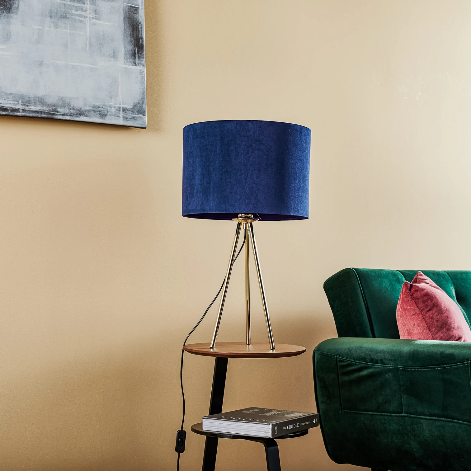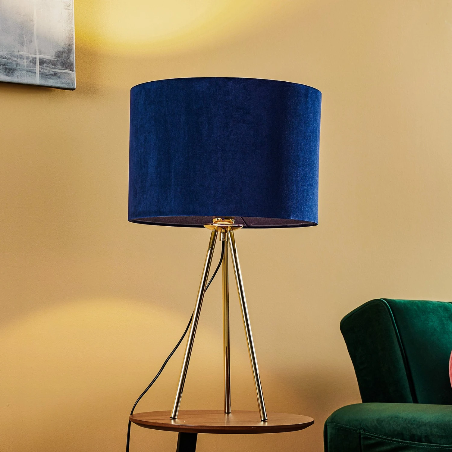 Lampe à Poser Monaco, Trépied Doré, Velours Bleu