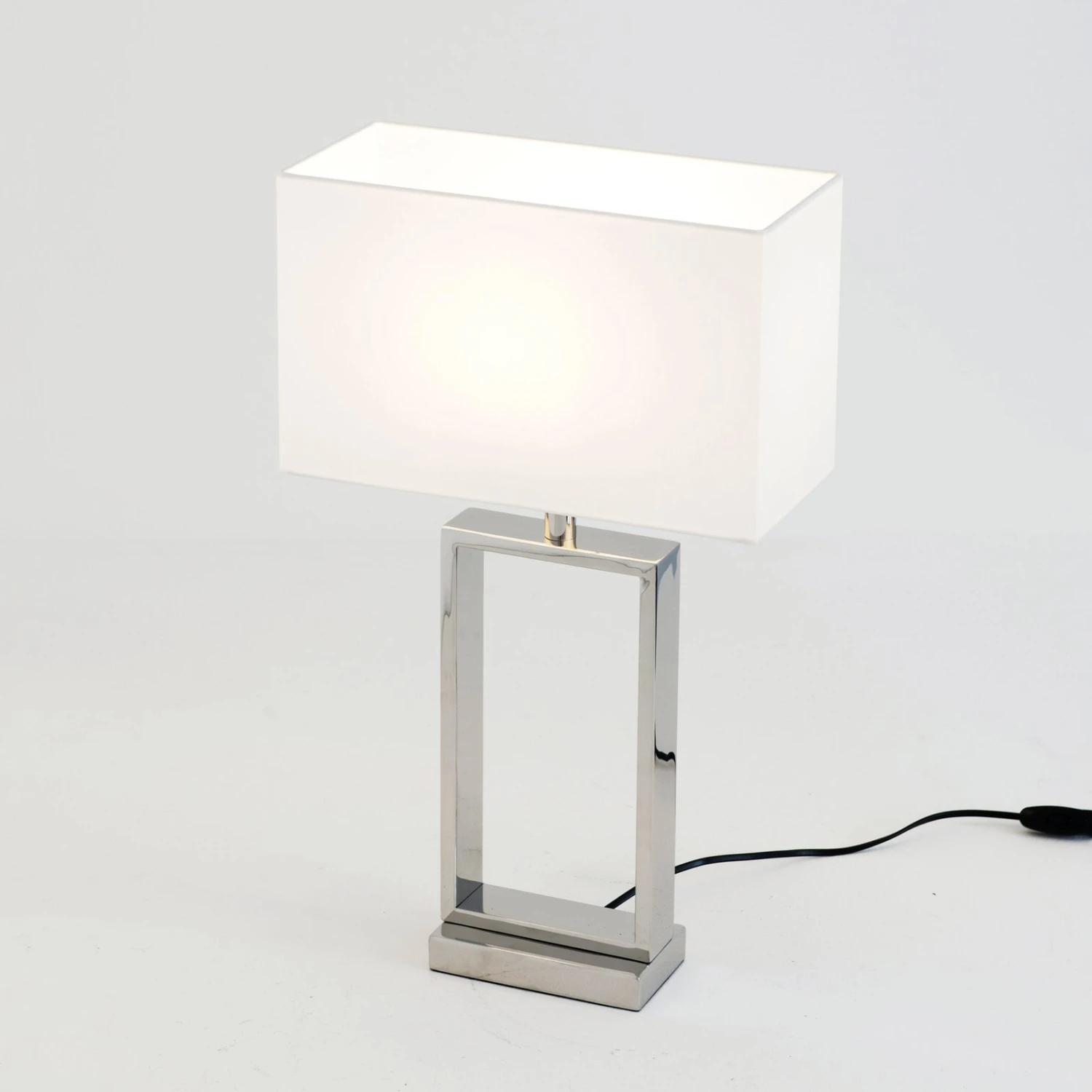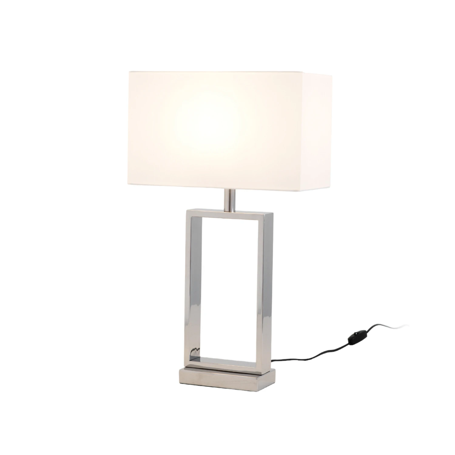 Lampe à Poser Sprazzo, Pied Argenté, Tissu Blanc