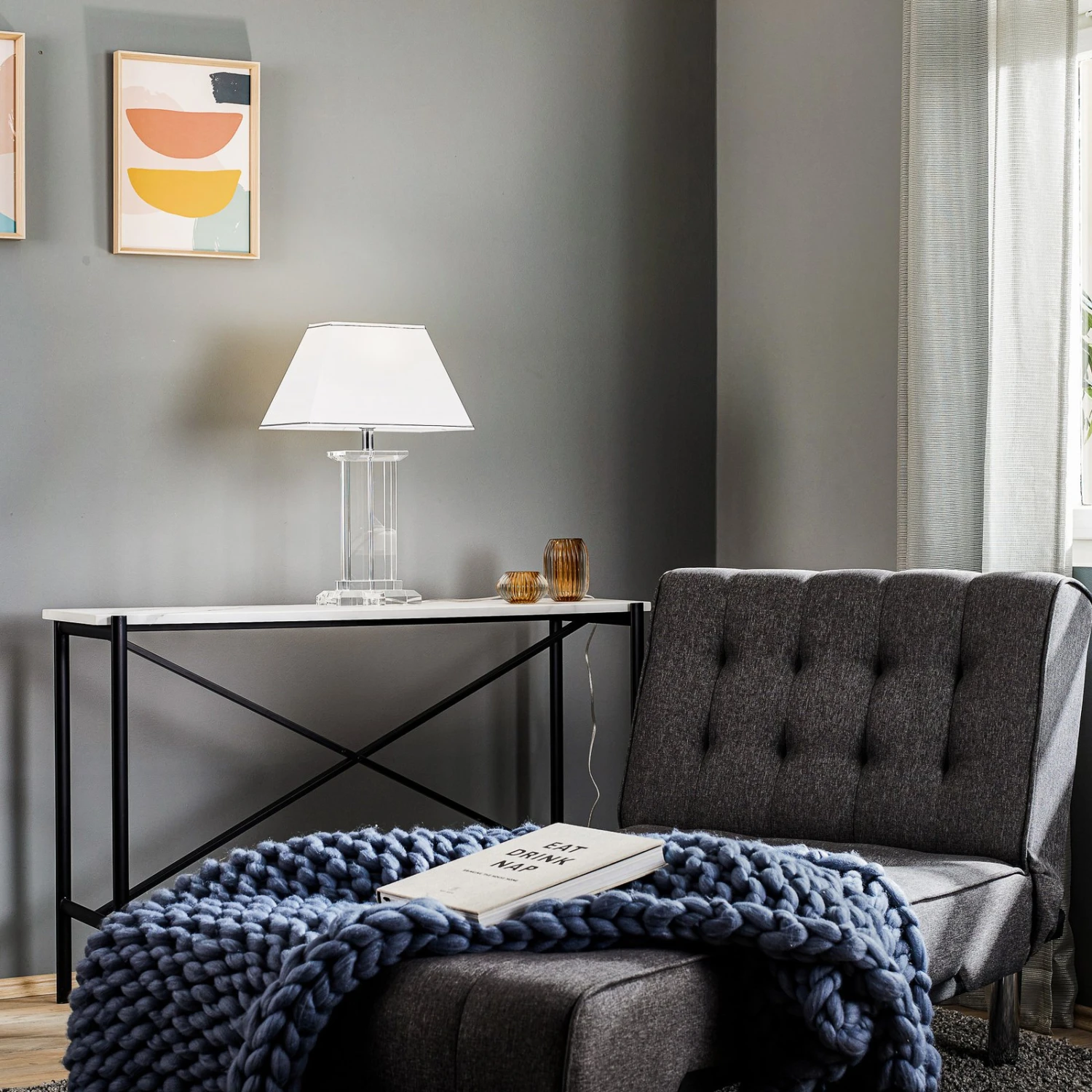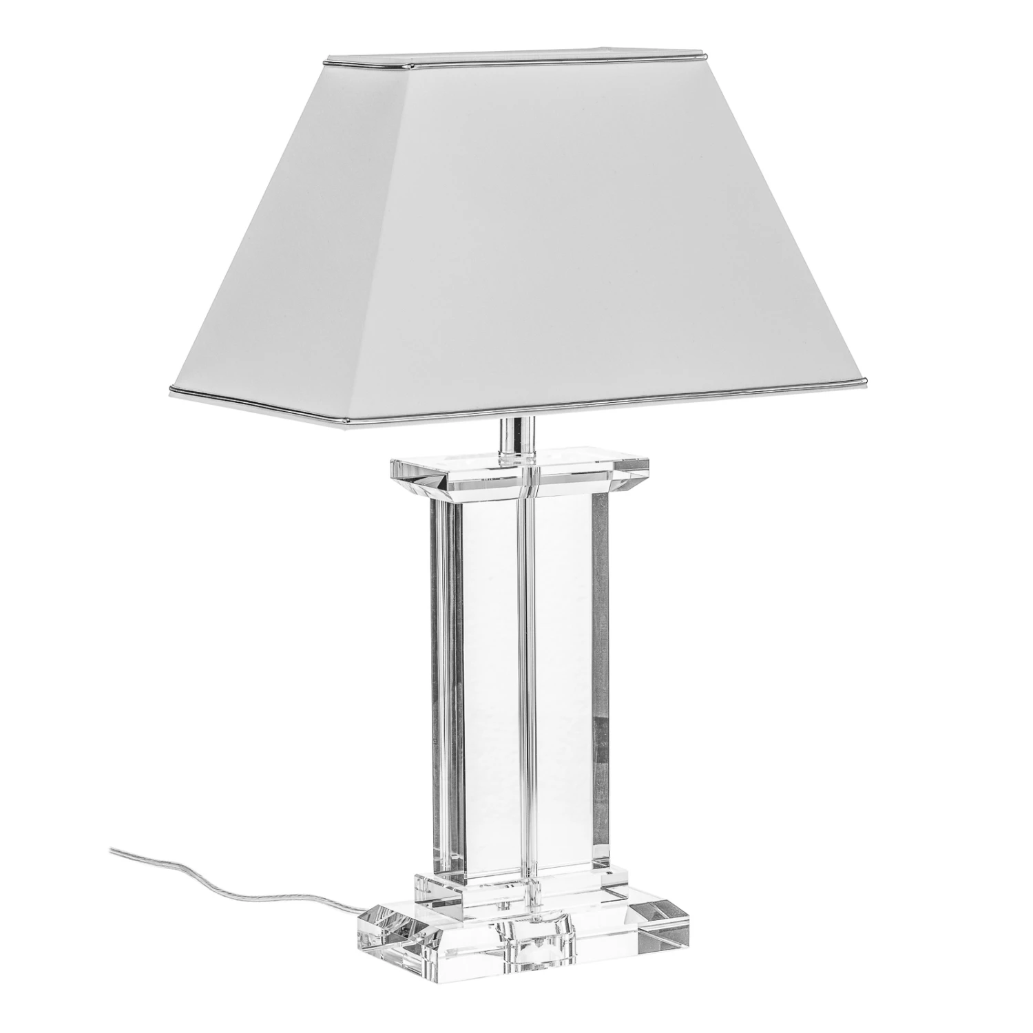 La couleur blanche de l’abat-jour de la lampe de table Véronique, combinée à la large base en forme de colonne, rayonne l’ordre et la structure. Un coup d’œil à la forme permet de s’en rendre compte immédiatement : ni ronde ni ludique n’appartient au monde de la lampe de table Véronique. Non seulement la nuance fine, mais plutôt la base en verre de cristal K9 taillé font que les caractéristiques de luxe et de magnificence semblent tout à fait appropriées. Cet effet est encore renforcé lorsque la lampe est allumée, car la colonne de verre brille également légèrement, créant un effet lumineux d’une beauté exceptionnelle. Malgré ces caractéristiques extraordinaires, les couleurs sont plutôt neutres, ce qui permet au luminaire de s’intégrer dans presque tous les styles de décoration intérieure. Avec une ampoule blanc chaud, il est parfait comme éclairage supplémentaire dans les différents salons.
