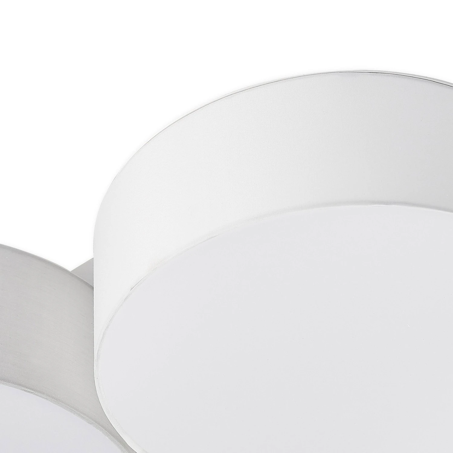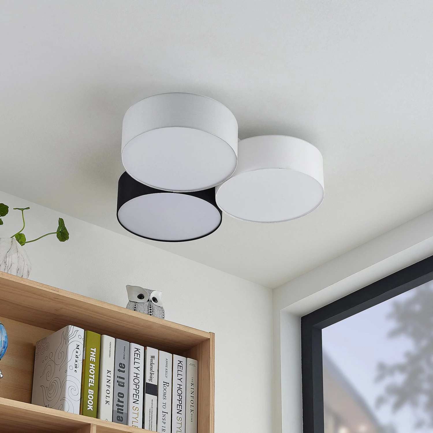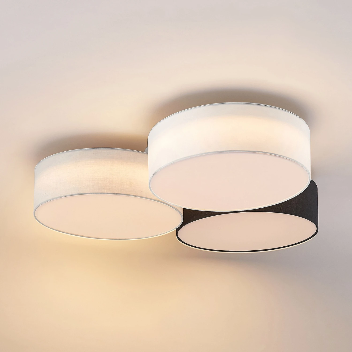 Plafonnier tricolore en textile Janita avec trois abat-jour de même taille de forme ronde