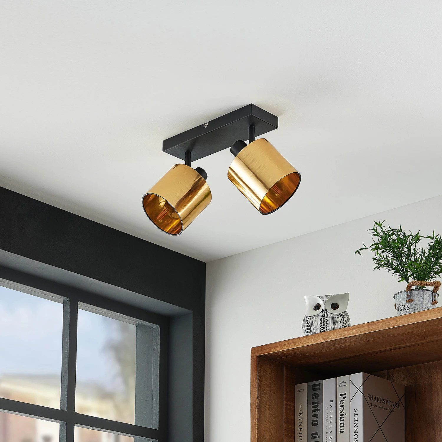 Plafonnier Joudy à deux lumières avec abat-jour en plastique de couleur bronze