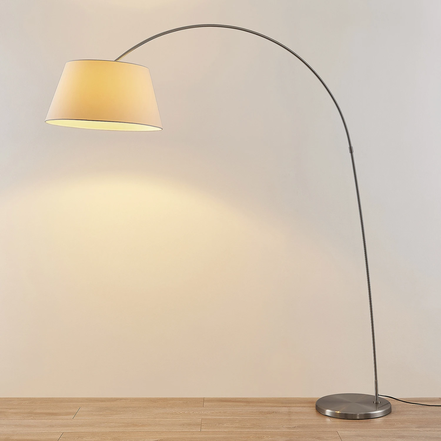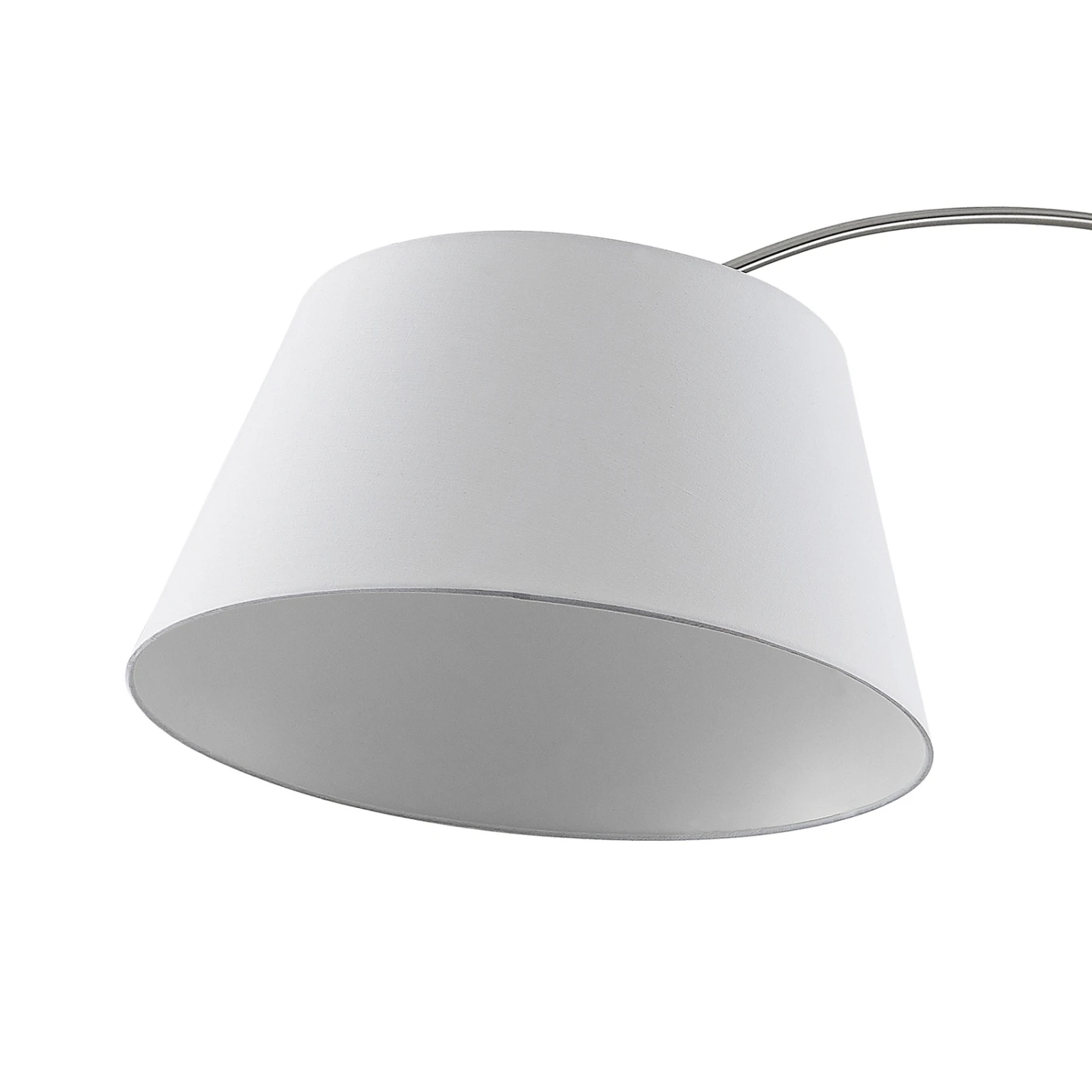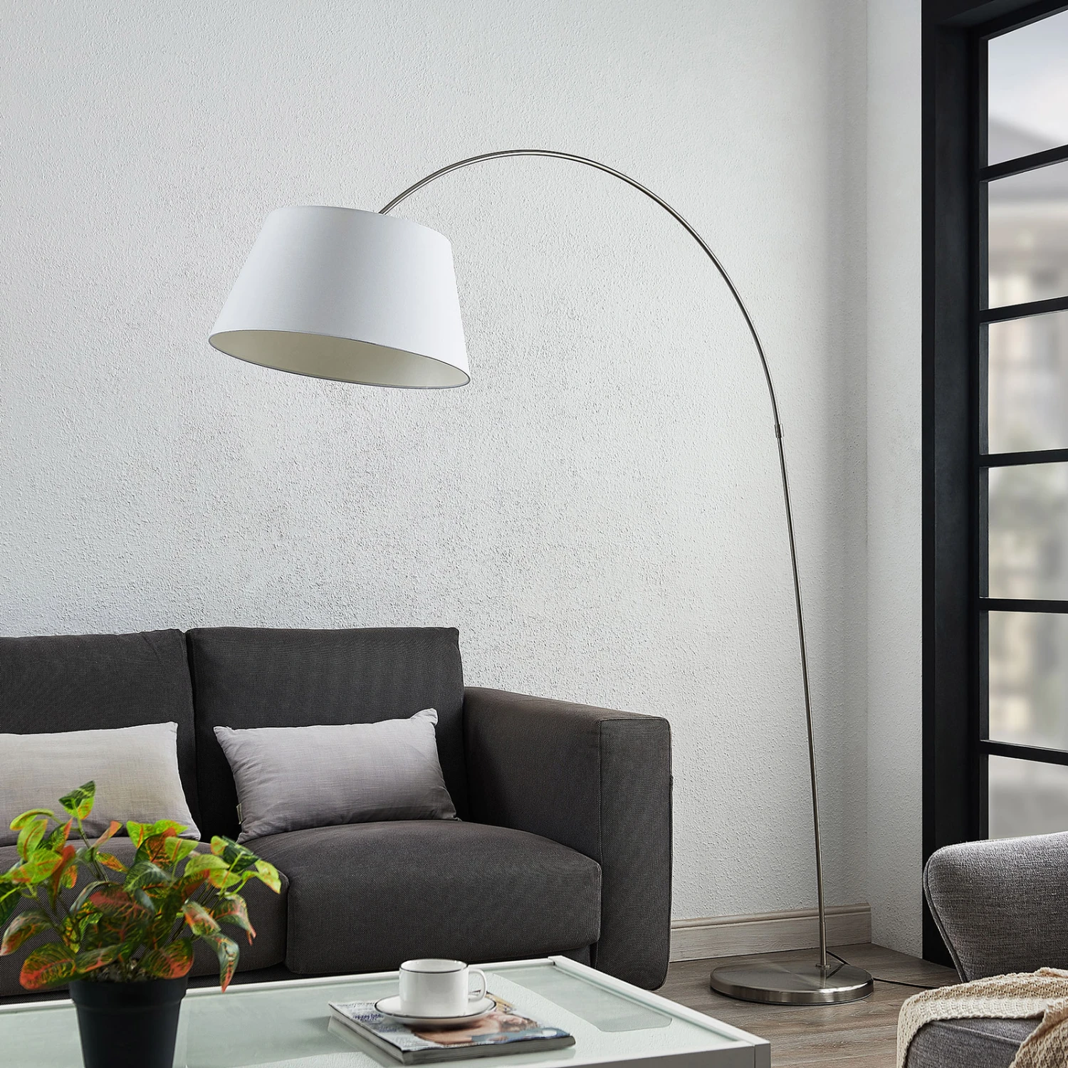 Lampadaire arqué Torvi en acier avec abat-jour textile blanc