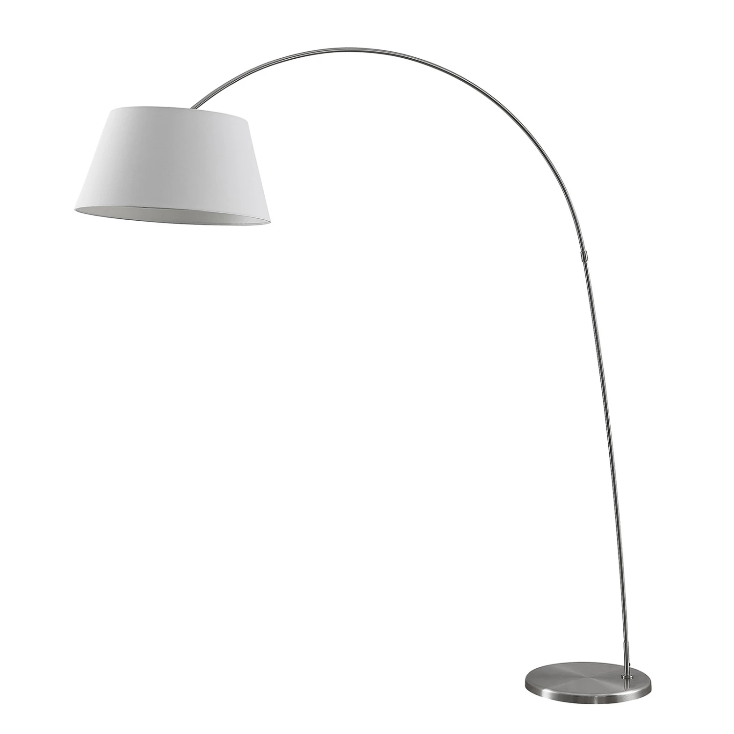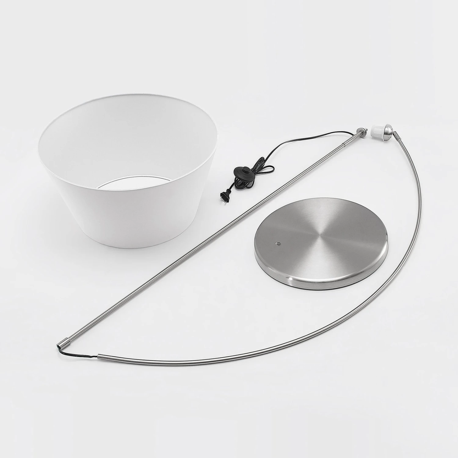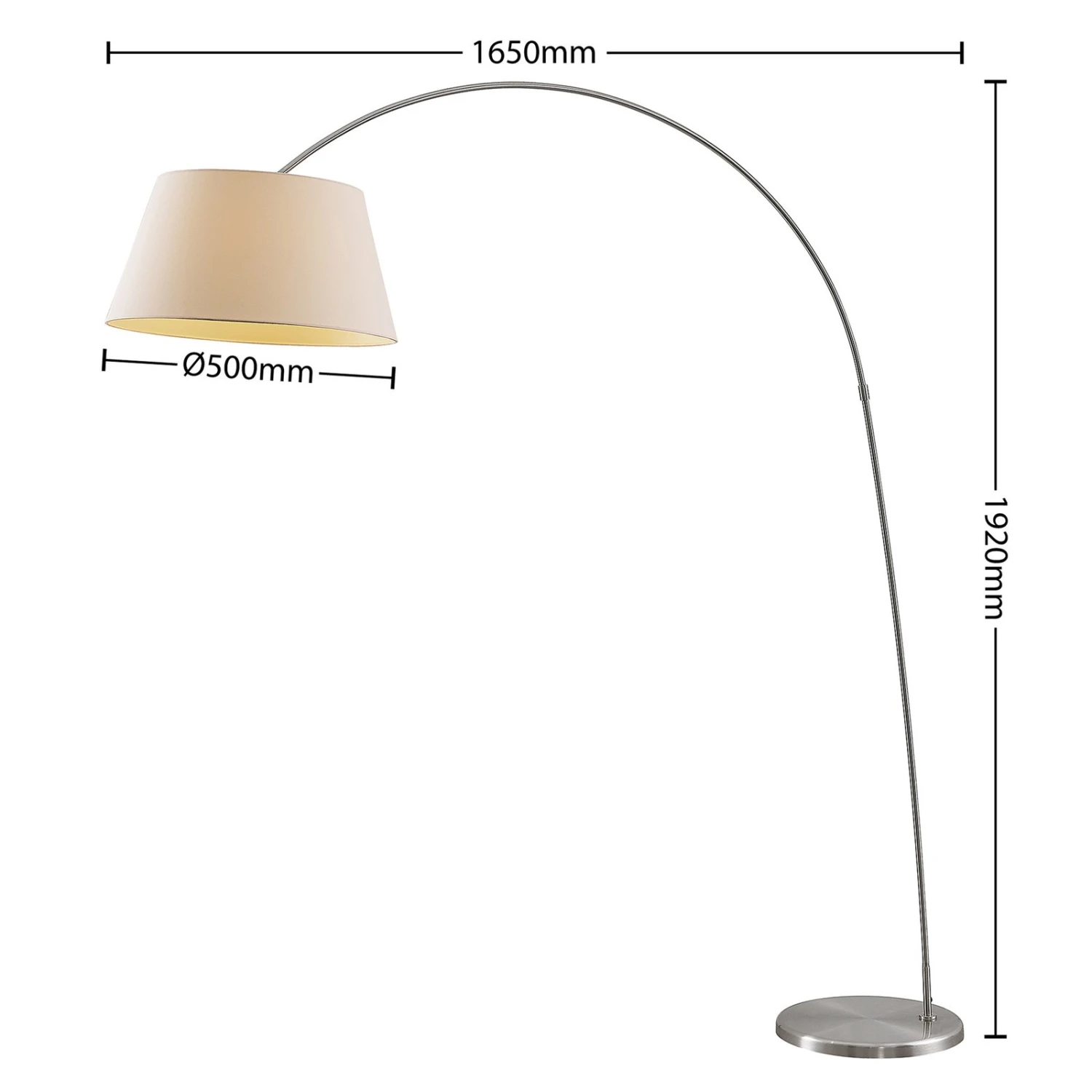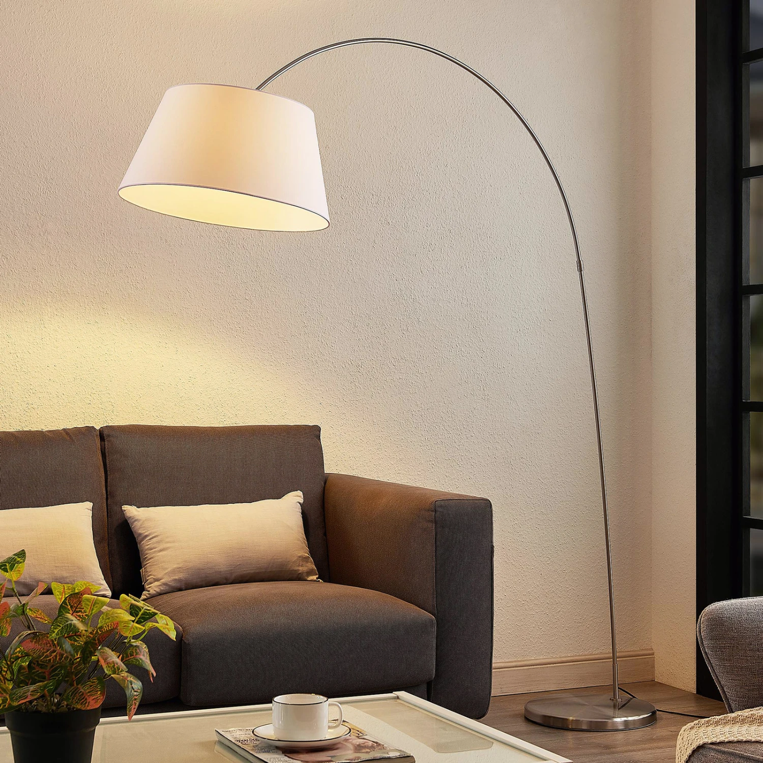 Lampadaire arqué Torvi en acier avec abat-jour textile blanc
