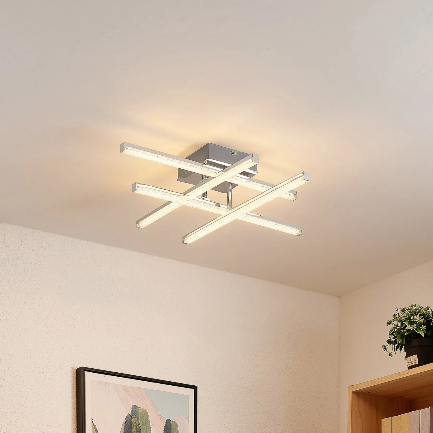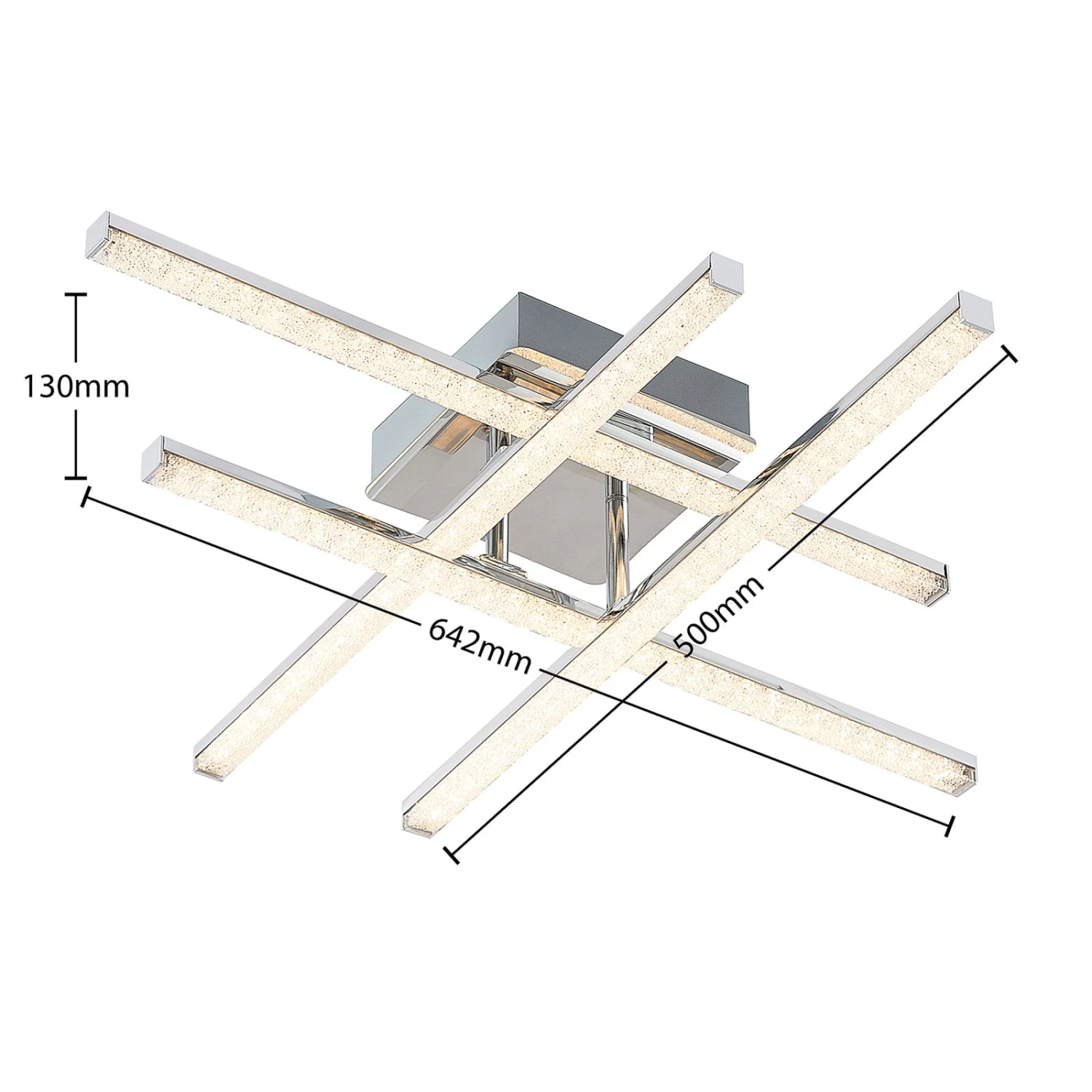 Le plafonnier LED Yokabed n’est pas seulement une décoration élégante, mais il permet également de varier la lumière grâce à sa fonction de changement de couleur. Sa suspension comporte quatre jambes de force croisées, qui créent un motif chic. Grâce à ses éléments de couleur chromés, il est agréable à l’œil et s’intègre dans les intérieurs les plus divers. Il est idéal pour le salon ou la salle à manger et crée une atmosphère adéquate. En outre, le plafonnier Yokabed LED est équipé de quatre LED, qui peuvent être allumées dans quatre couleurs différentes au choix à l’aide d’une télécommande.
