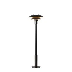 Cette lumière de cheminement est également un accroche-regard visuel sur la propriété lorsque la lumière n’est pas allumée. Il est en acier inoxydable et peint en noir. L’ombre a été créée d’après le système d’ombre triple conçu par Poul Henningsen en 1925/26. Les trois éléments d’ombrage superposés créent un éclairage homogène et sans éblouissement, car le système de triple ombrage réfléchissant dirige la lumière directement vers le bas. Pour optimiser encore la réflexion, les faces intérieures de l’abat-jour ont été peintes en blanc.