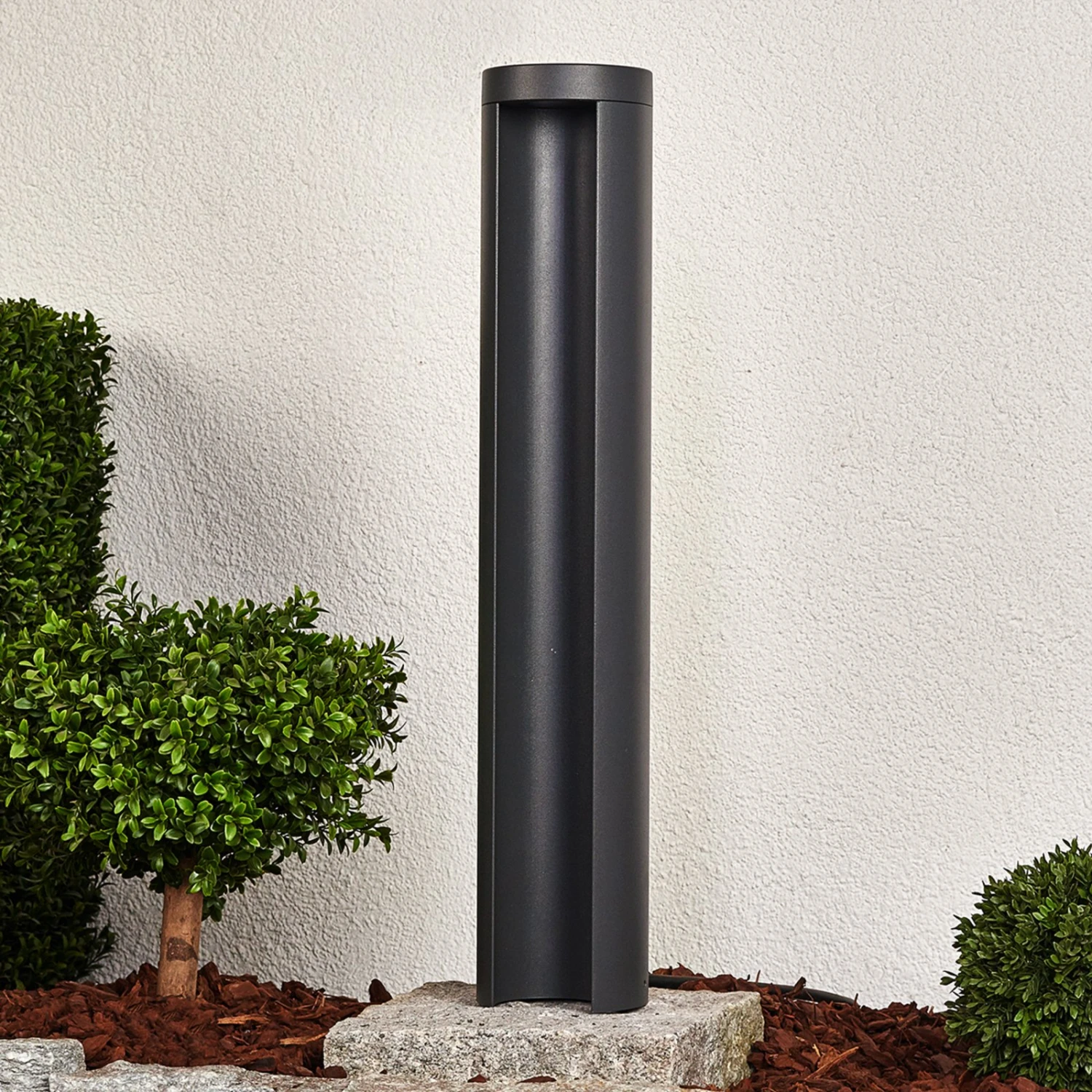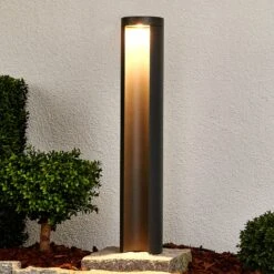 Cette borne lumineuse à l’aspect moderne à un effet particulièrement esthétique et brille avec un effet de lumière indirecte tout autour du jardin et de la maison. Celui-ci est réalisé par le fait que l’ampoule LED se trouve dans la partie supérieure de la lampe de conception rectiligne, et rayonne vers le bas, alors que, selon la perspective, la source de lumière n’est généralement pas visible directement. L’équipement LED est en outre synonyme pour une haute efficacité énergétique et une longue durée de vie, ce qui signifie que des standards modernes ont été poursuivis, non seulement en ce qui concerne l’apparence, mais aussi la technologie.