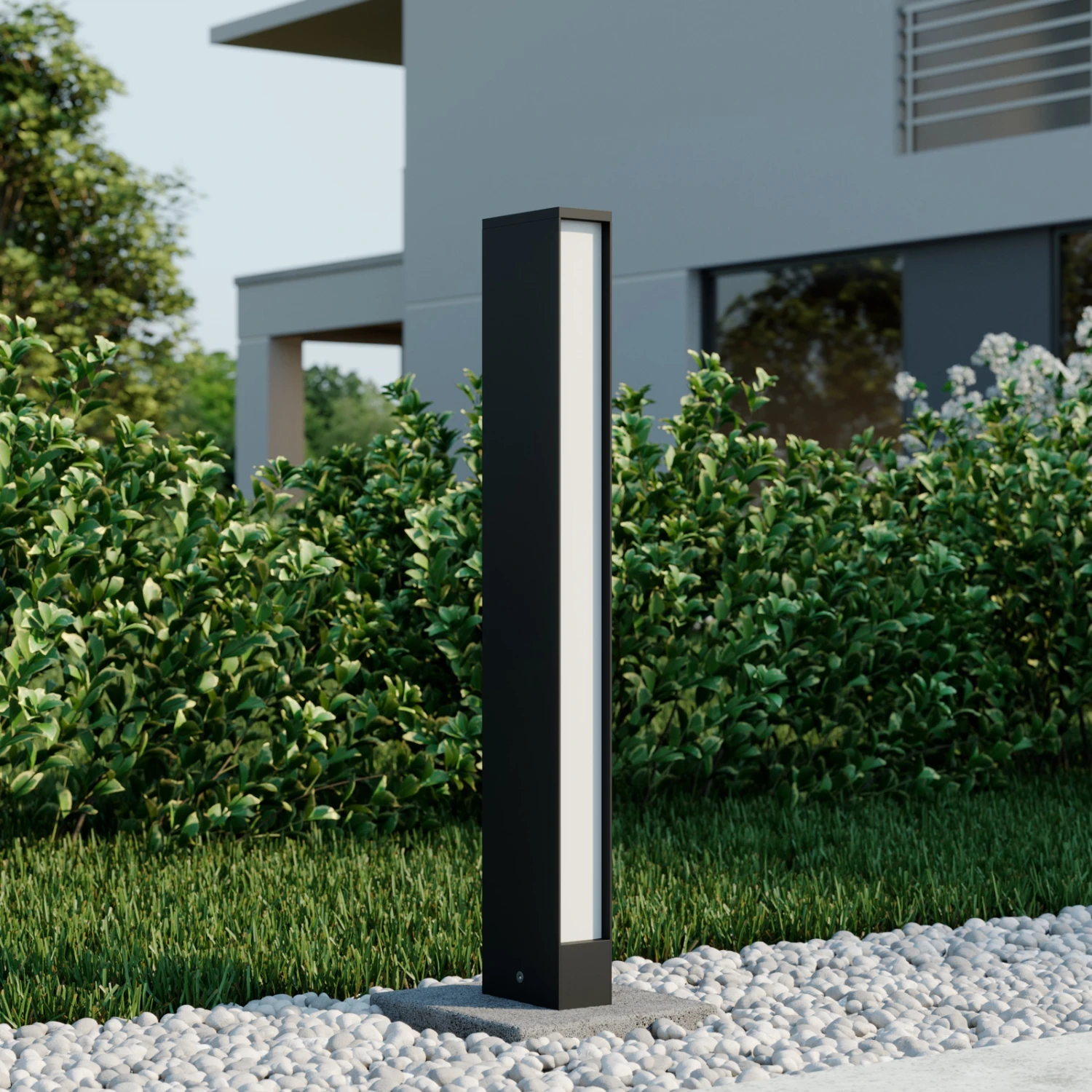 La borne lumineuse LED à deux lampes Lirka éclaire non seulement le sol des allées de jardin, mais assure également un éclairage harmonieux qui guide agréablement les personnes à l’extérieur. Cette lampe se distingue également par son design moderne et par sa couleur gris foncé.