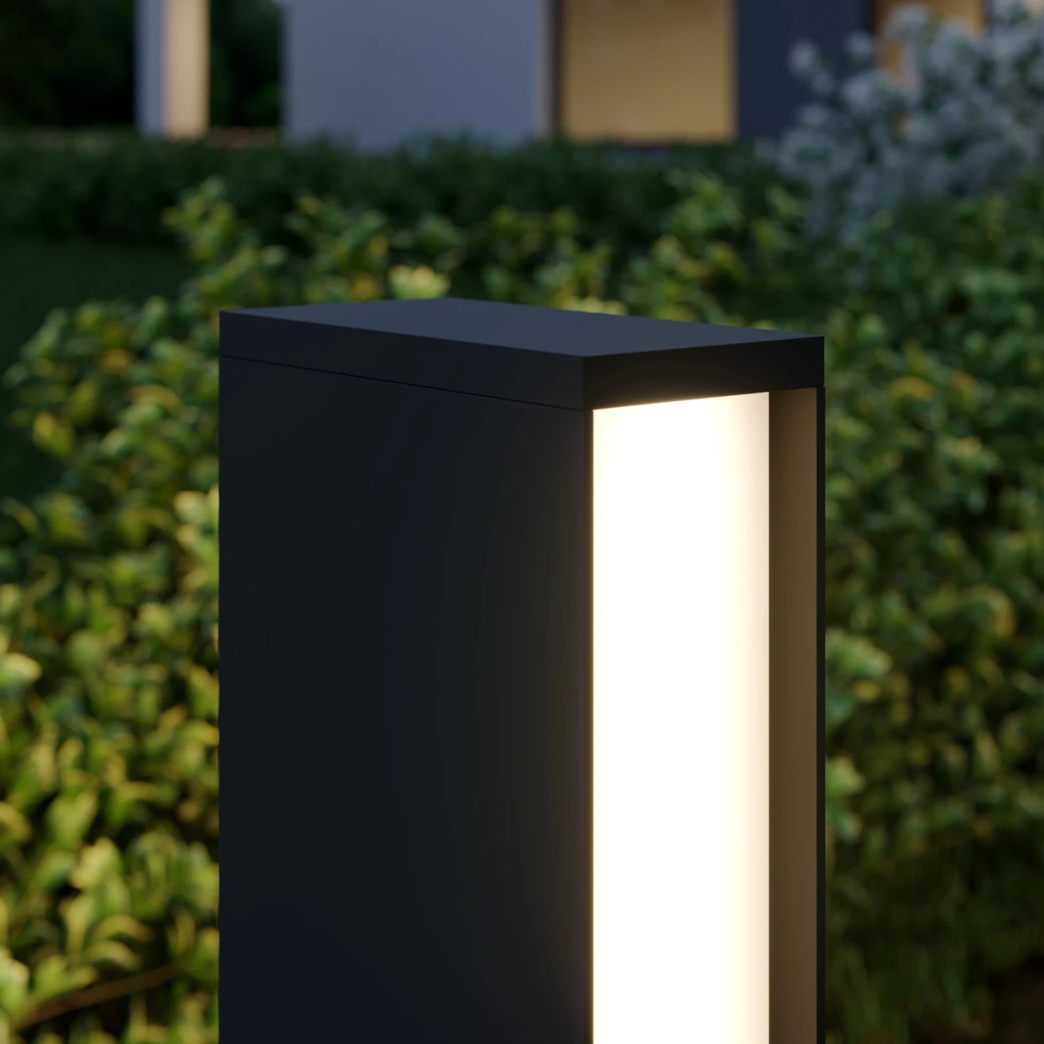 Le corps du luminaire est composé d’une colonne angulaire stable en aluminium moulé sous pression résistant aux intempéries et est pourvu d’un diffuseur en PC des deux côtés. Celui-ci diffuse une lumière douce sur toute la longueur du luminaire, ce qui assure une ambiance lumineuse homogène qui éclaire efficacement les allées ou les escaliers.