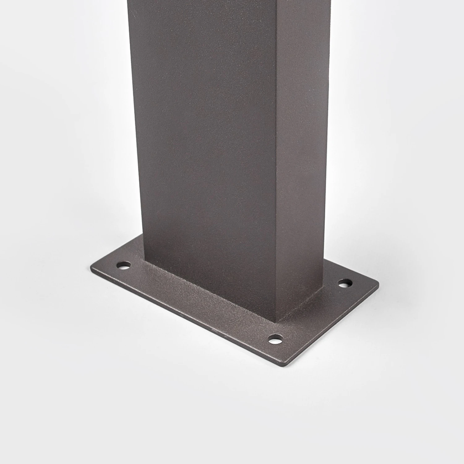 La borne lumineuse Marius présente clairement un design moderne, car le corps de la lampe en aluminium est laqué en gris graphite et ne présente aucun détail voyant puisqu’il est plutôt épuré. La tête de lampe plate est pourvue de LED de qualité supérieure qui diffusent une agréable lumière blanc chaud et qui assurent un éclairage intense. Pour pouvoir mieux orienter la lumière, la borne lumineuse LED est équipée d’une articulation permettant d’incliner la tête de lampe vers le haut et vers le bas.