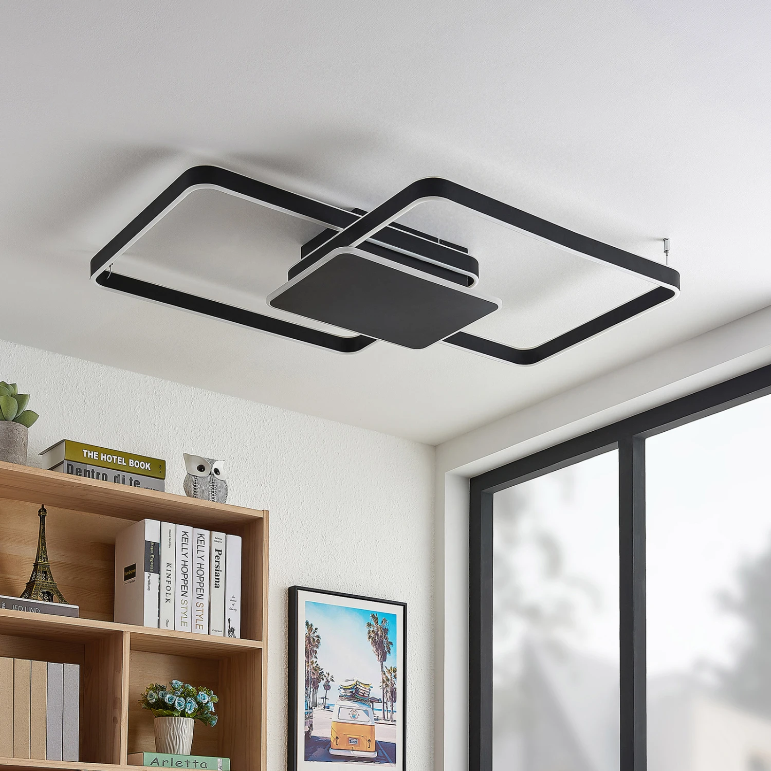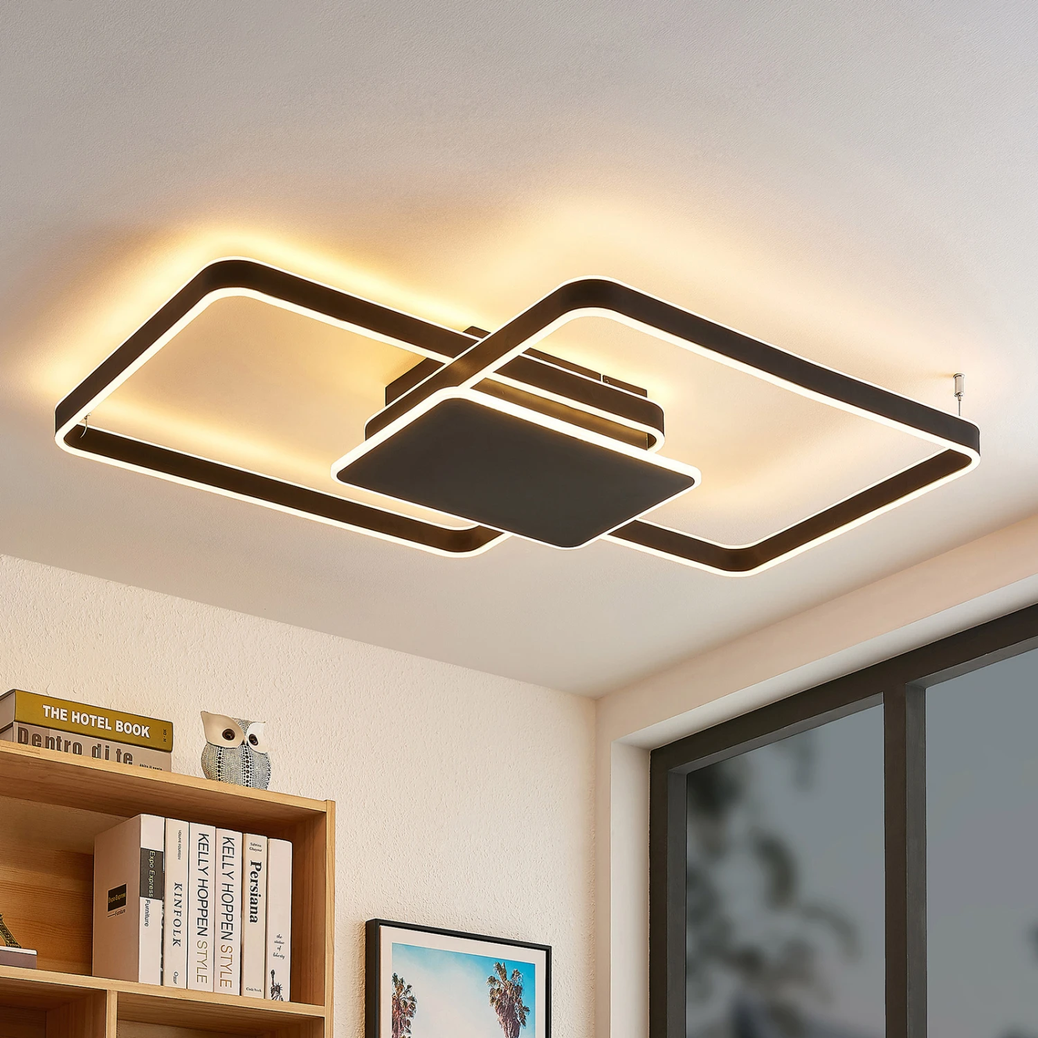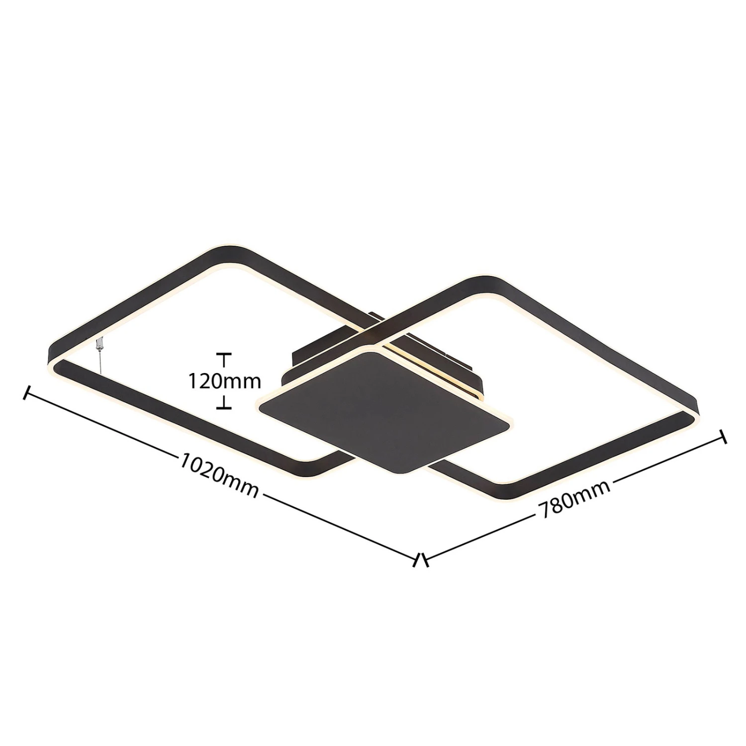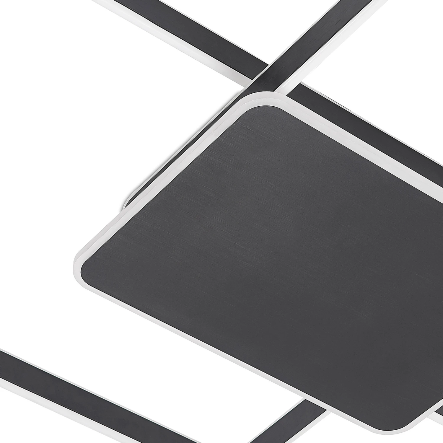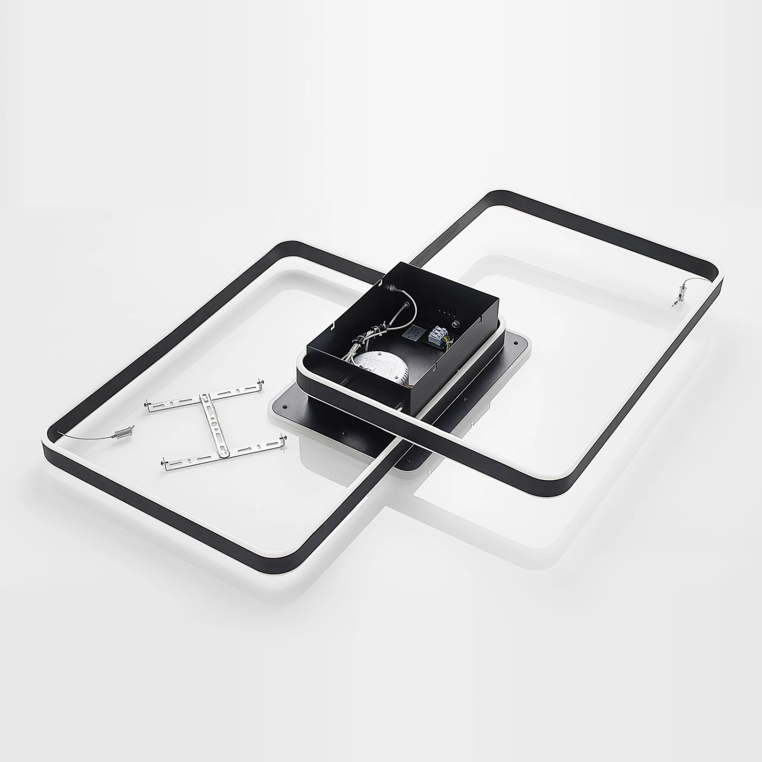 Le plafonnier noir Kadira est un bel ajout dans les espaces modernes. Des cadres rectangulaires garnis de LED forment ensemble une source de lumière élégante. L’interrupteur mural courant permet d’allumer et d’éteindre le luminaire comme d’habitude. Grâce à la technique de variation à 3 niveaux avec fonction off intégrée, il est en outre possible de faire varier l’intensité lumineuse sur trois niveaux différents en actionnant plusieurs fois l’interrupteur : 100 %, 40 % et 15 %.