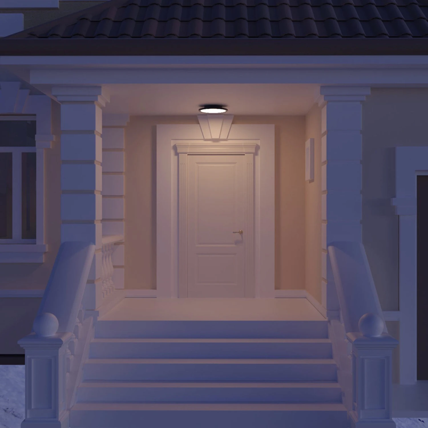 Le plafonnier d’extérieur LED Malena est également équipé d’un capteur qui en fait une lampe fonctionnelle pour l’extérieur. Selon que la lampe est utilisée au plafond ou au mur, l’angle de détection est de 360° ou de 150°. La portée du capteur est de maximum 6 m et la durée d’éclairage peut être réglée (10 sec./90 sec./3 min./10 min.).
