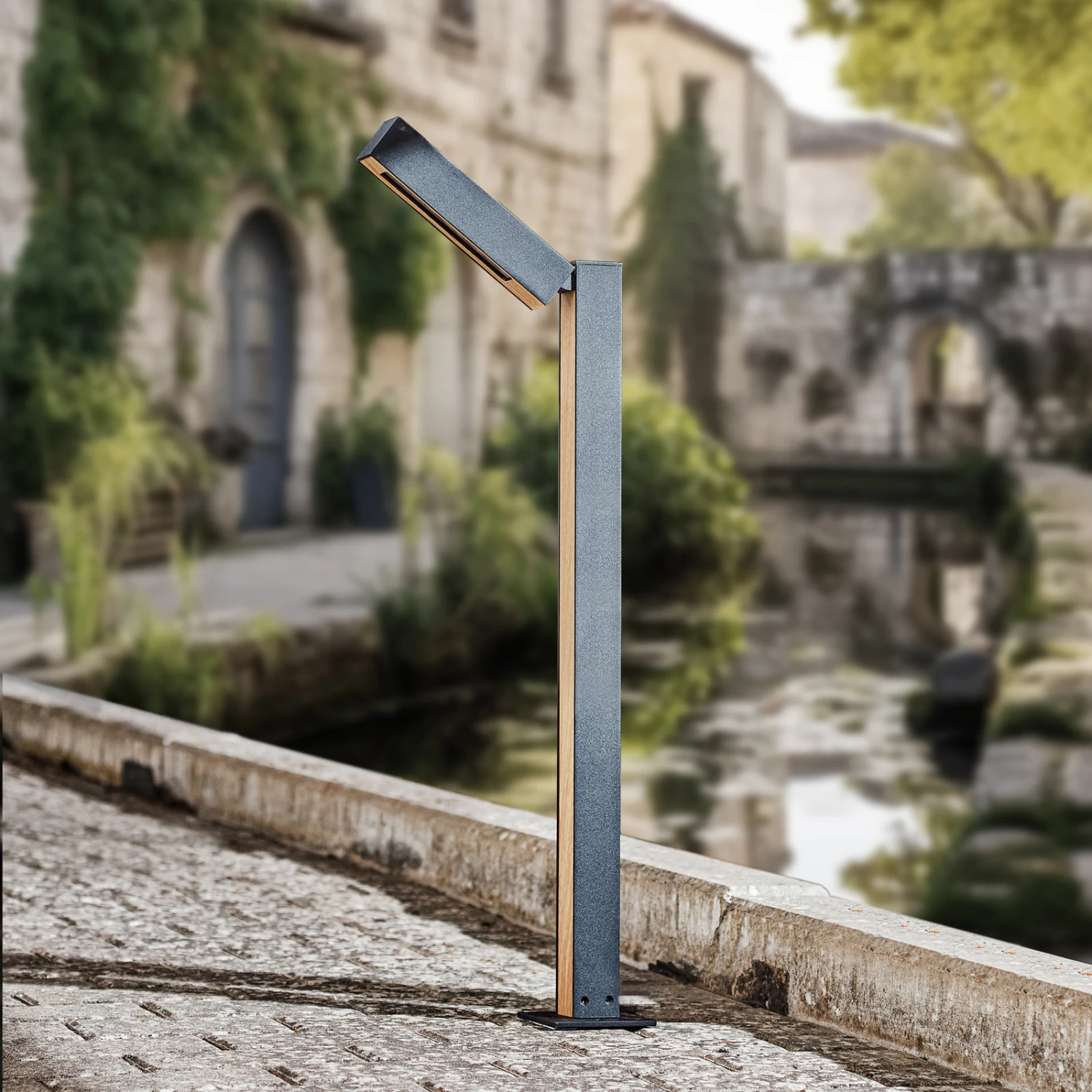 Borne d’éclairage LED inclinable Taskalin avec décor boisé attrayant