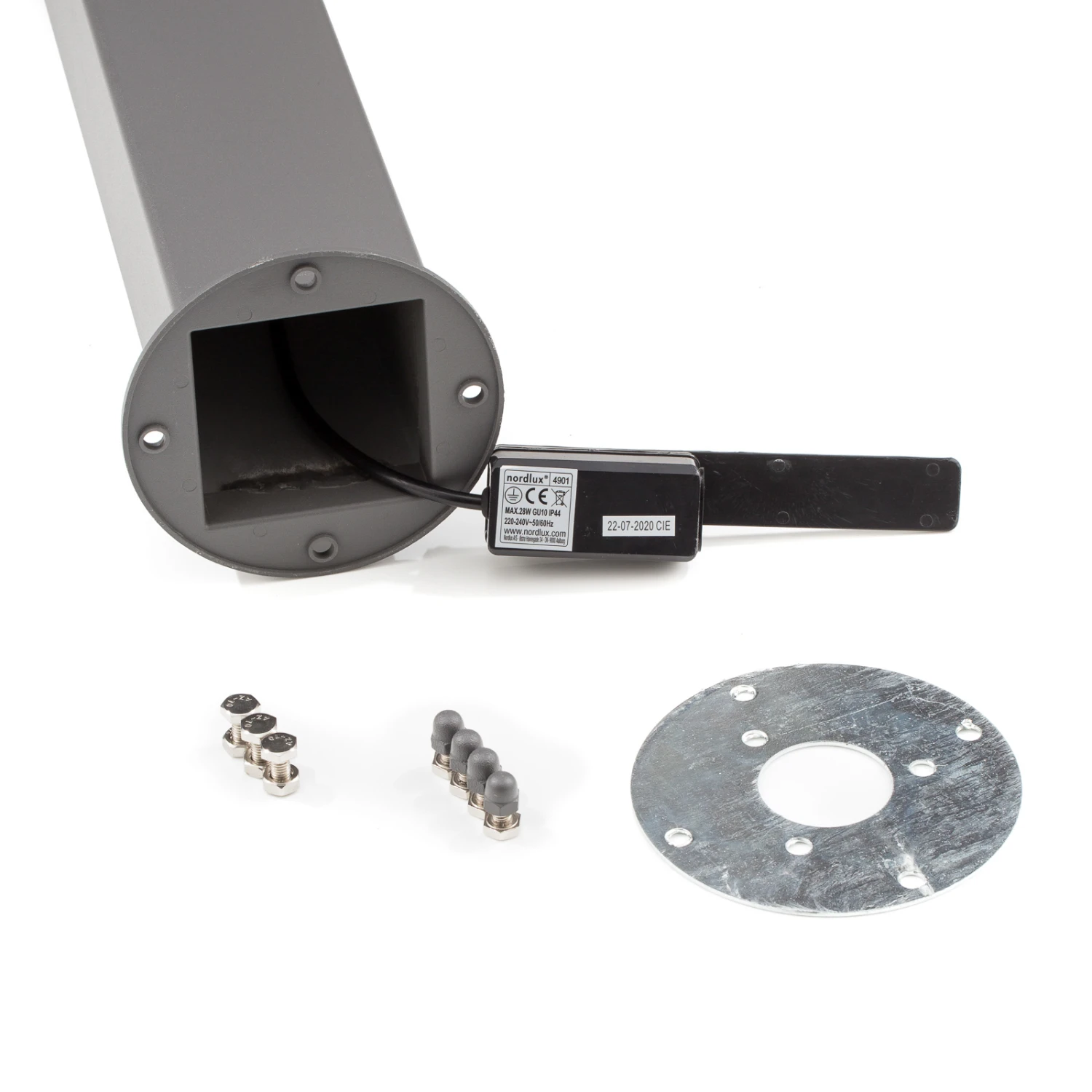 Le luminaire de cheminement en aluminium Concordia a une forme de base simple comme un parallélépipède vertical allongé. Il est coupé dans une zone sur un bord latéral. Par cette ouverture, la lumière de la lampe GU10 sort latéralement et vers le bas, de sorte qu’un éclairage efficace du chemin est obtenu tout en évitant l’éblouissement. La finition anthracite maintient Concordia en arrière-plan pendant la journée.