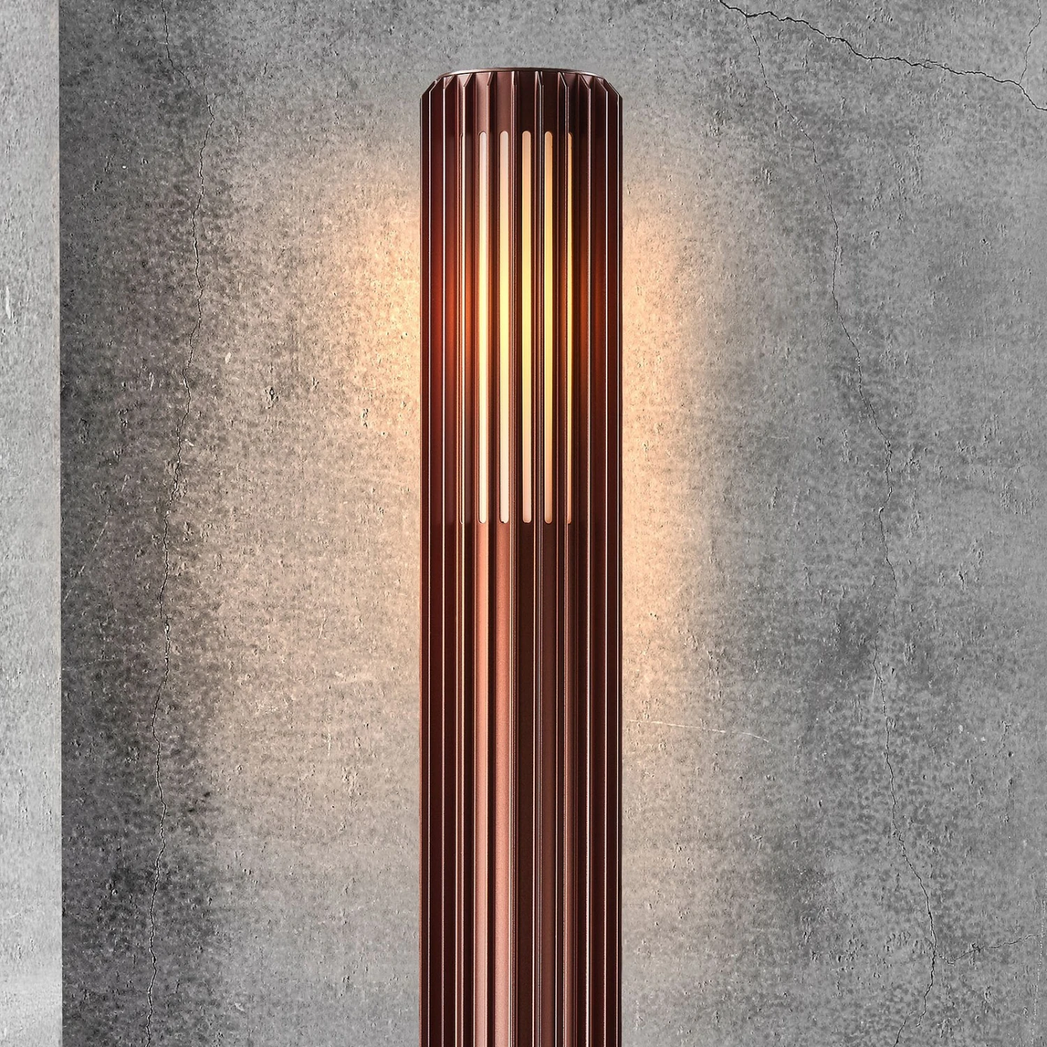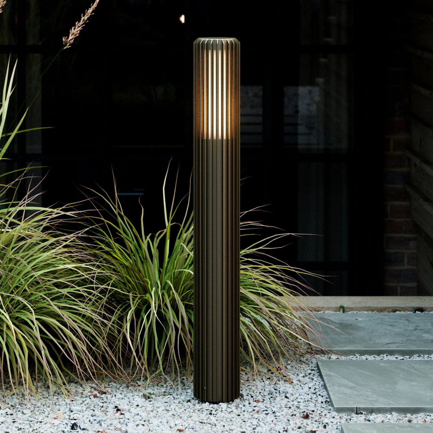 Luminaire d’allée élancé Aludra en aluminium anodiséLe boîtier spécialement traité du luminaire d’allée Aludra est plus résistant à la corrosion que le métal peint et apporte ainsi une caractéristique importante d’un luminaire d’extérieur. Dans sa partie supérieure, la colonne cylindrique nervurée est équipée à l’intérieur d’un diffuseur sous lequel est vissée l’ampoule. La lumière brille ainsi à travers les lamelles et éclaire les trottoirs et les allées. Un piquet de fixation spécialement conçu donne la stabilité nécessaire à l’extérieur.