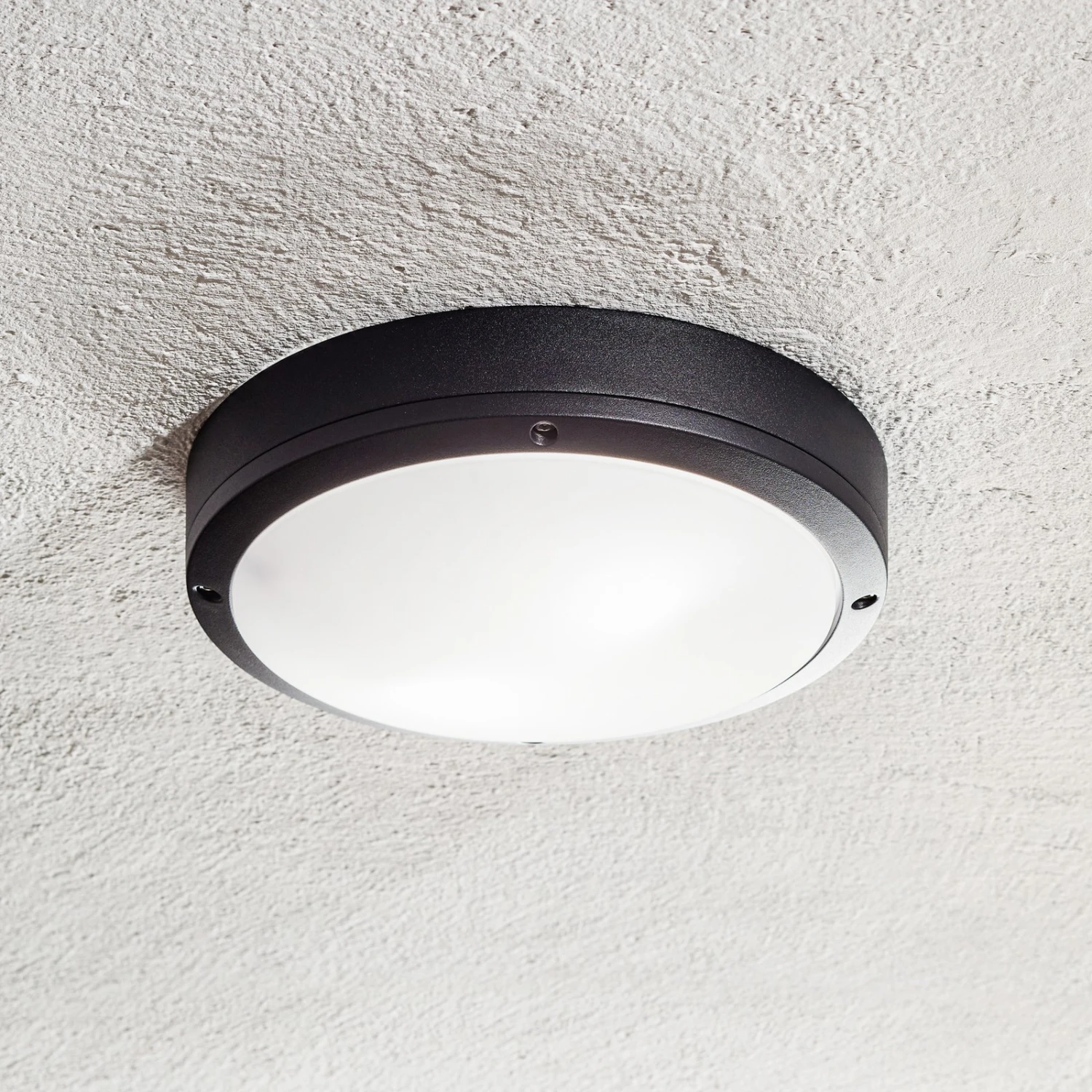 Grâce au diffuseur satiné en polycarbonate, le plafonnier Desi assure un éclairage homogène en extérieur. Équipé d’ampoules LED basse consommation, il est par ailleurs particulièrement économique. Le cadre en métal laqué joue la carte du contraste avec le plafond. Des ampoules adaptées peuvent être commandées directement via la rubrique Accessoires. L’utilisation d’ampoules LED ou basse consommation jusqu’à 12 W est recommandée.