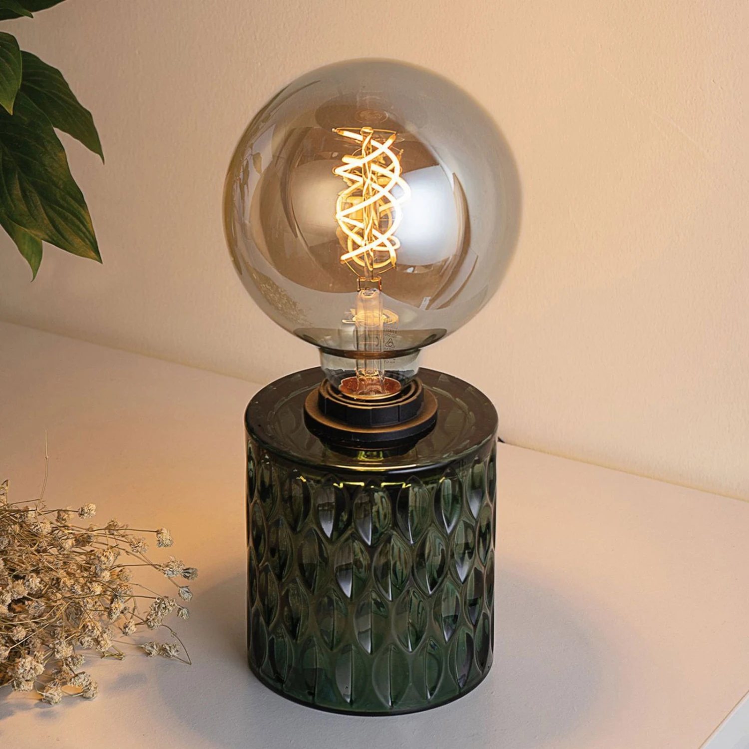 Le verre vert de la lampe de table Crystal Magic est taillé à la manière d’un cristal, ce qui est très tendance. Comme la source lumineuse est visible, la lampe de table adopte des looks complètement différents grâce à différentes ampoules. L’ampoule souhaitée doit être choisie séparément. Le plaisir d’expérimenter est ici le bienvenu. Pour un éclairage non éblouissant, une lampe à miroir de tête ou une lampe à miroir circulaire est particulièrement adaptée. L’utilisation de la lampe Pauleen est donc tout à fait simple : Il suffit de l’installer, de placer la lampe et de l’allumer à l’aide de l’interrupteur à cordon.