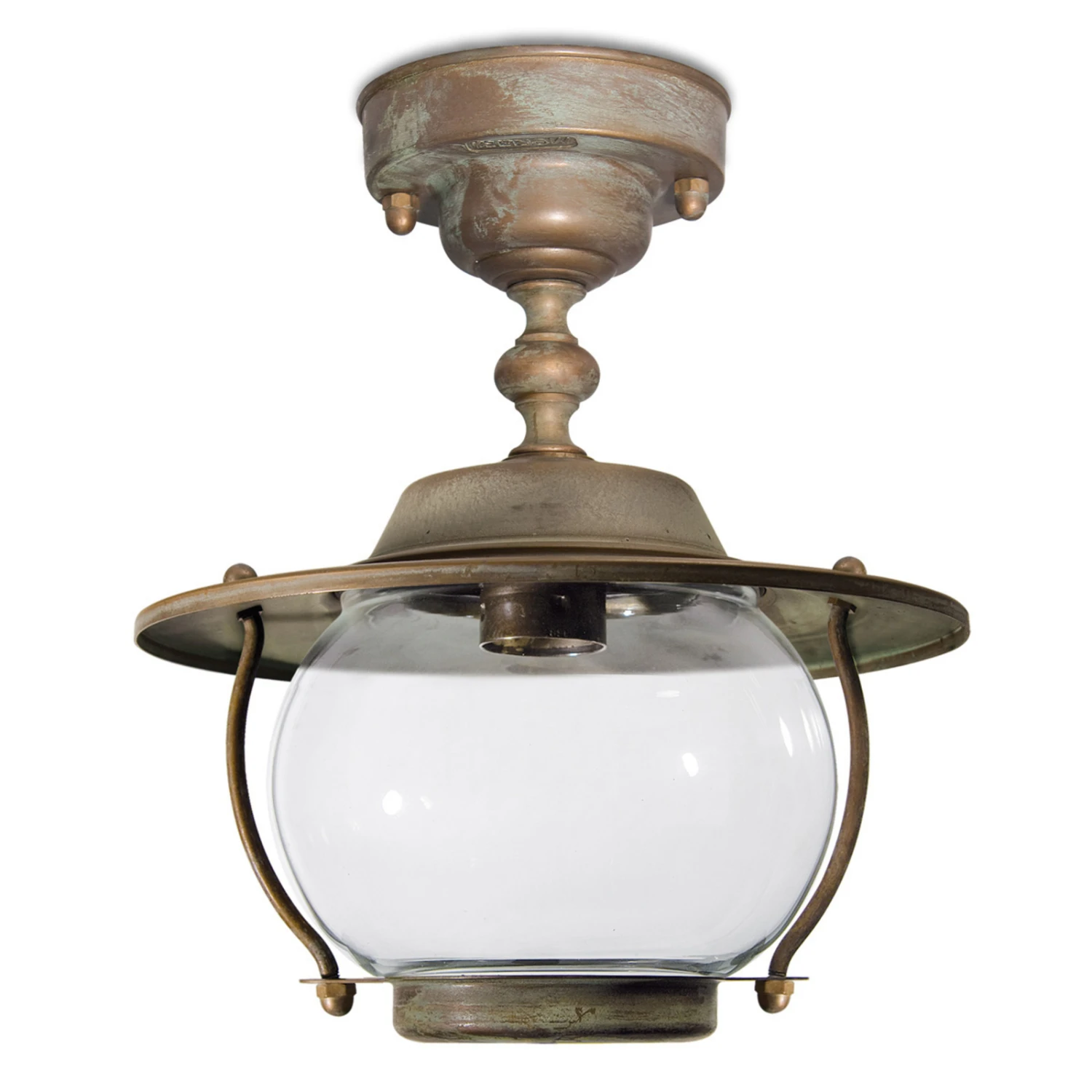 La lampe Pergola est un beau plafonnier d’extérieur qui éclaire à la perfection les espaces extérieurs. L’élégant verre transparent combiné à la structure cuivrée robuste est du plus bel effet. La lumière est principalement diffusée vers les côtés.