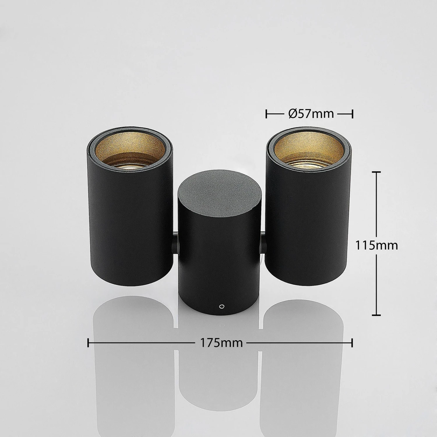 Projecteur LED Gesina à deux flammes avec surface noire et abat-jour orientable