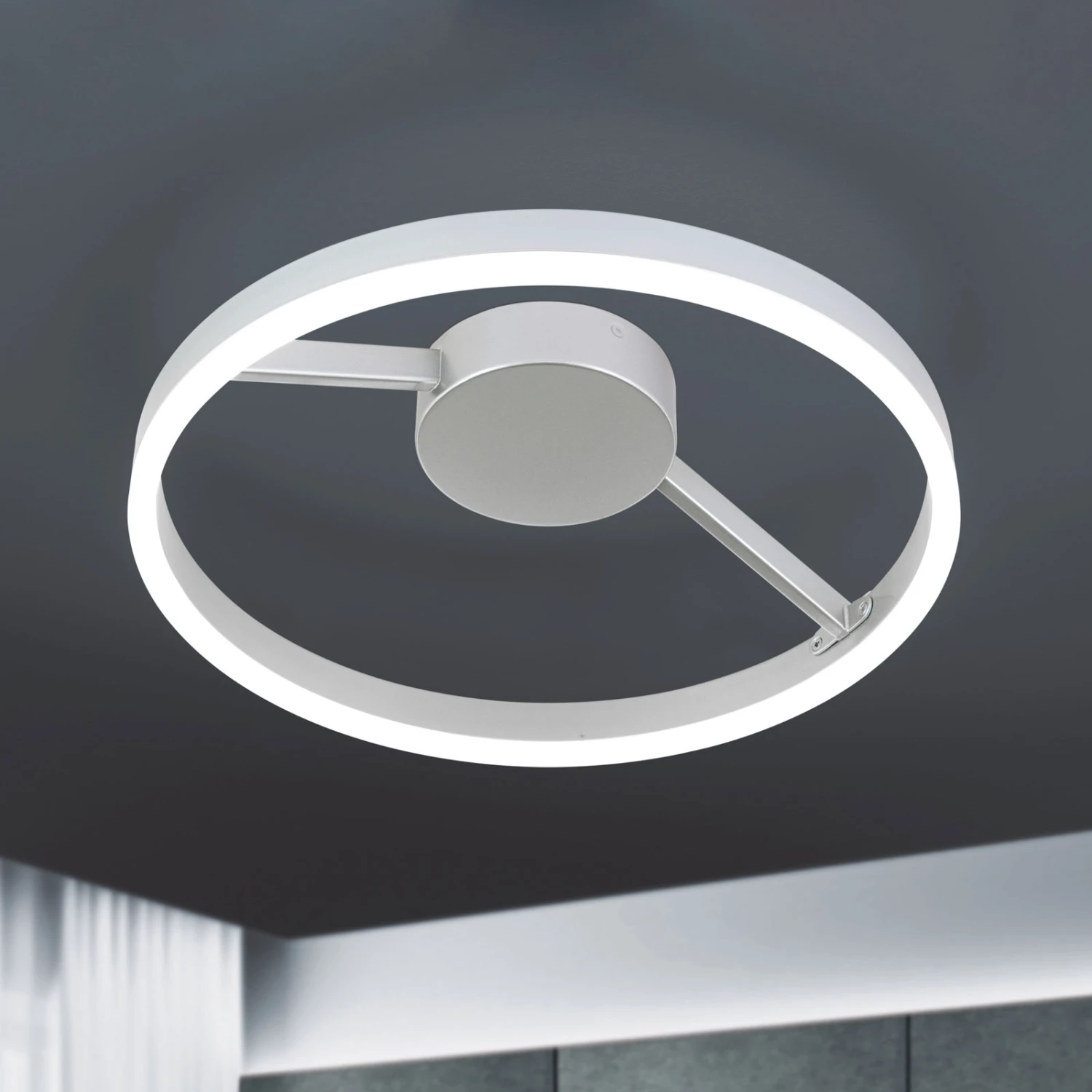Le plafonnier circulaire à LED Robert est une œuvre d’art visuel qui maintient l’équilibre en soi. Il est relié à la connexion au plafond au milieu du luminaire par une fine barre et donne une impression de flottement. Avec sa surface en aluminium mat, le luminaire semble simple, mais aussi moderne et contemporain. Avec un gradateur de phase à bord arrière (non inclus), la luminosité peut être réglée en continu. Grâce aux LEDs blanc chaud intégrées, le plafonnier Robert peut être utilisé confortablement dans les salons et les chambres à coucher et fournit une lumière agréable et chaleureuse.