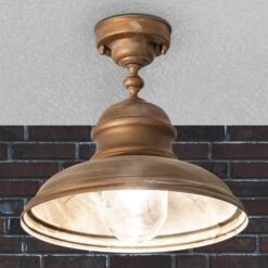 Plafonnier d’extérieur rustique Riccardo en laiton d’aspect ancien