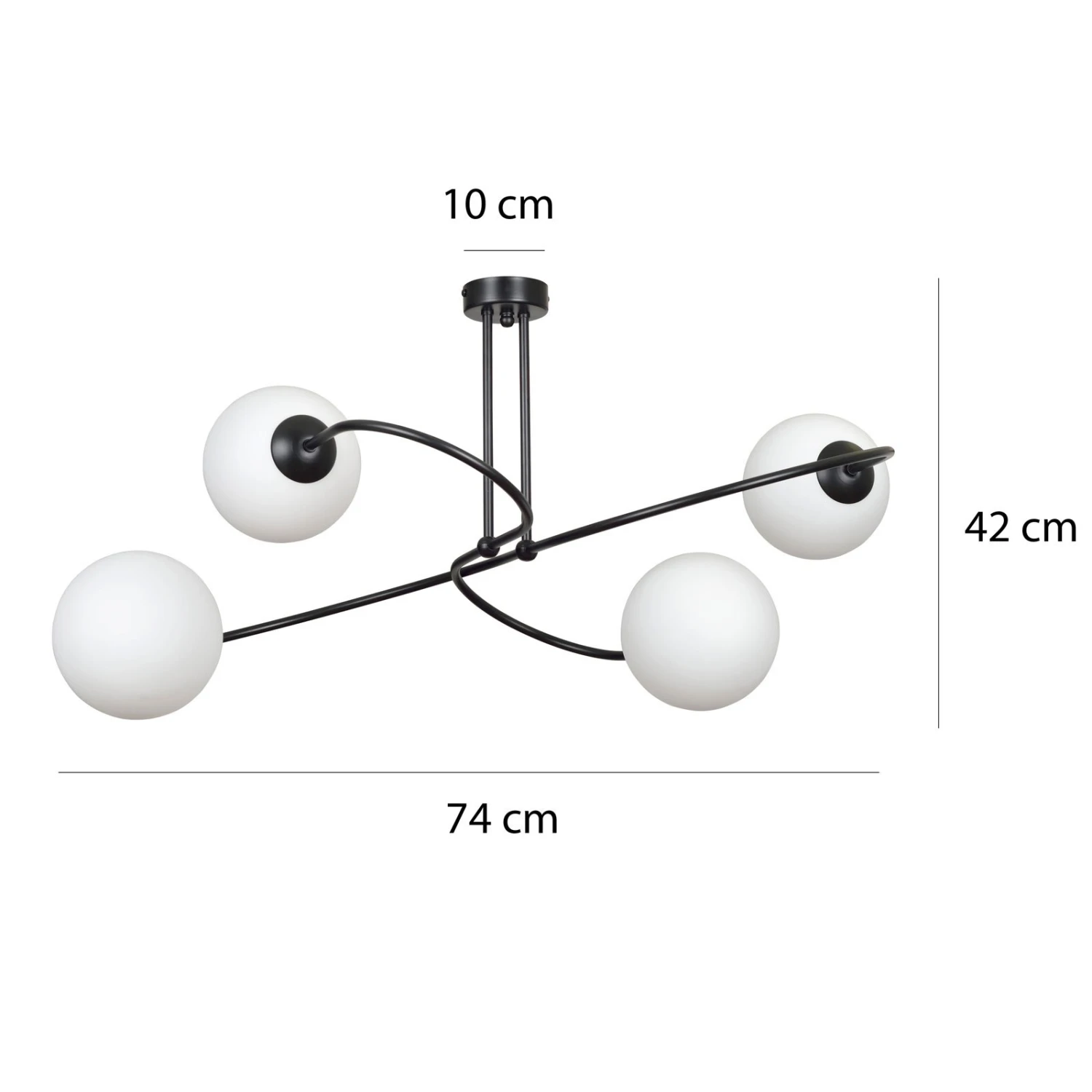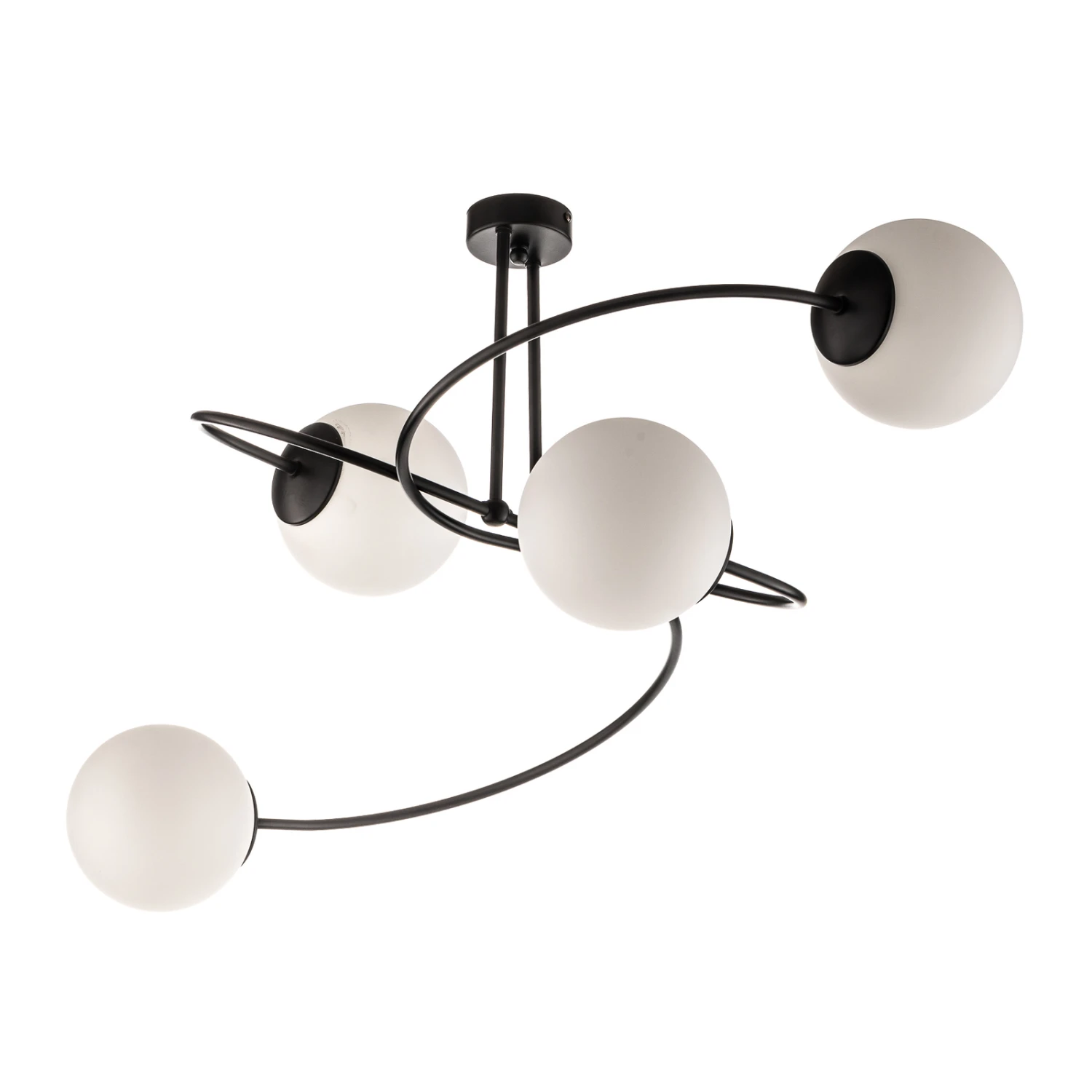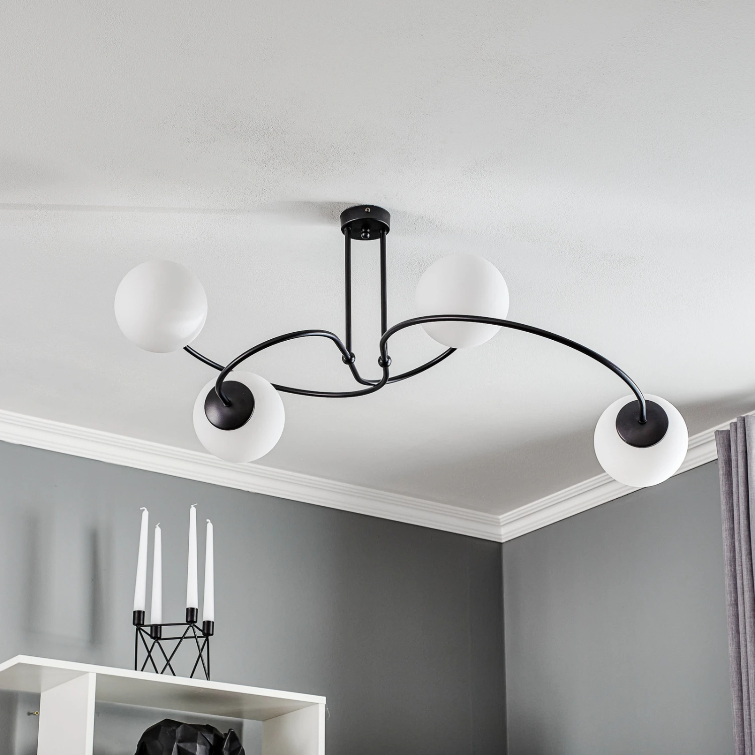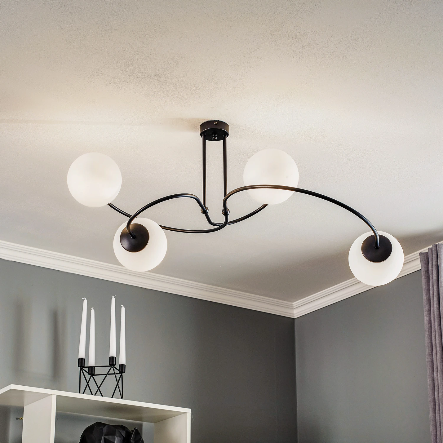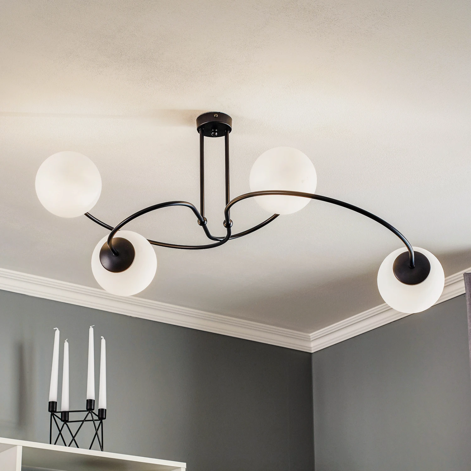 Plafonnier Selbi 4 En Noir Avec Sphères De Verre