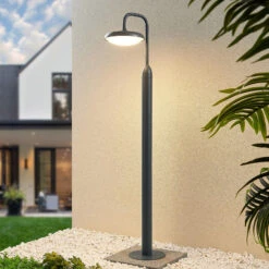 L’éclairage d’allée LED gris foncé Larkumi offre une lumière blanche chaude à l’extérieur