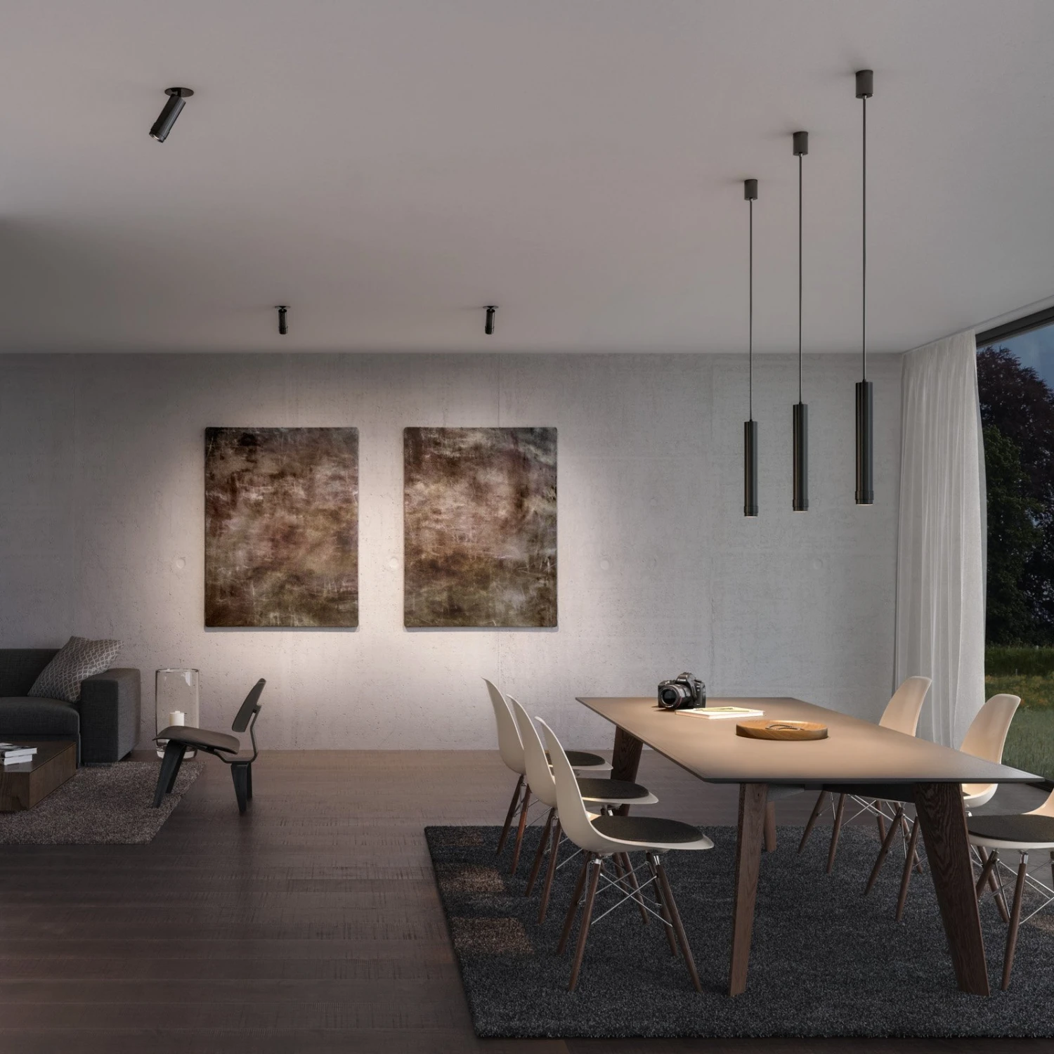 Vertico est un projecteur de plafond à LED fabriqué en aluminium et équipé d’une technologie de lentille de haute qualité. La particularité est le réglage du cône lumineux : équipé d’une bague de focalisation qui sert à la fois de liaison fonctionnelle et d’élément de design, l’angle du faisceau peut être réglé de manière pratique de 20° à 60°. La flexibilité du faisceau, de l’alignement et de la luminosité, l’apparence neutre avec la tête de luminaire cylindrique et le support de plafond rond, ainsi que l’excellente qualité de la lumière font de Vertico le choix idéal pour un éclairage de haute qualité et adapté aux besoins des espaces de vente ainsi que des zones de réception, de salon et de passage.