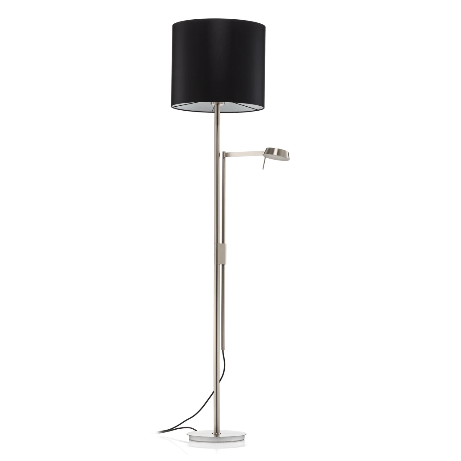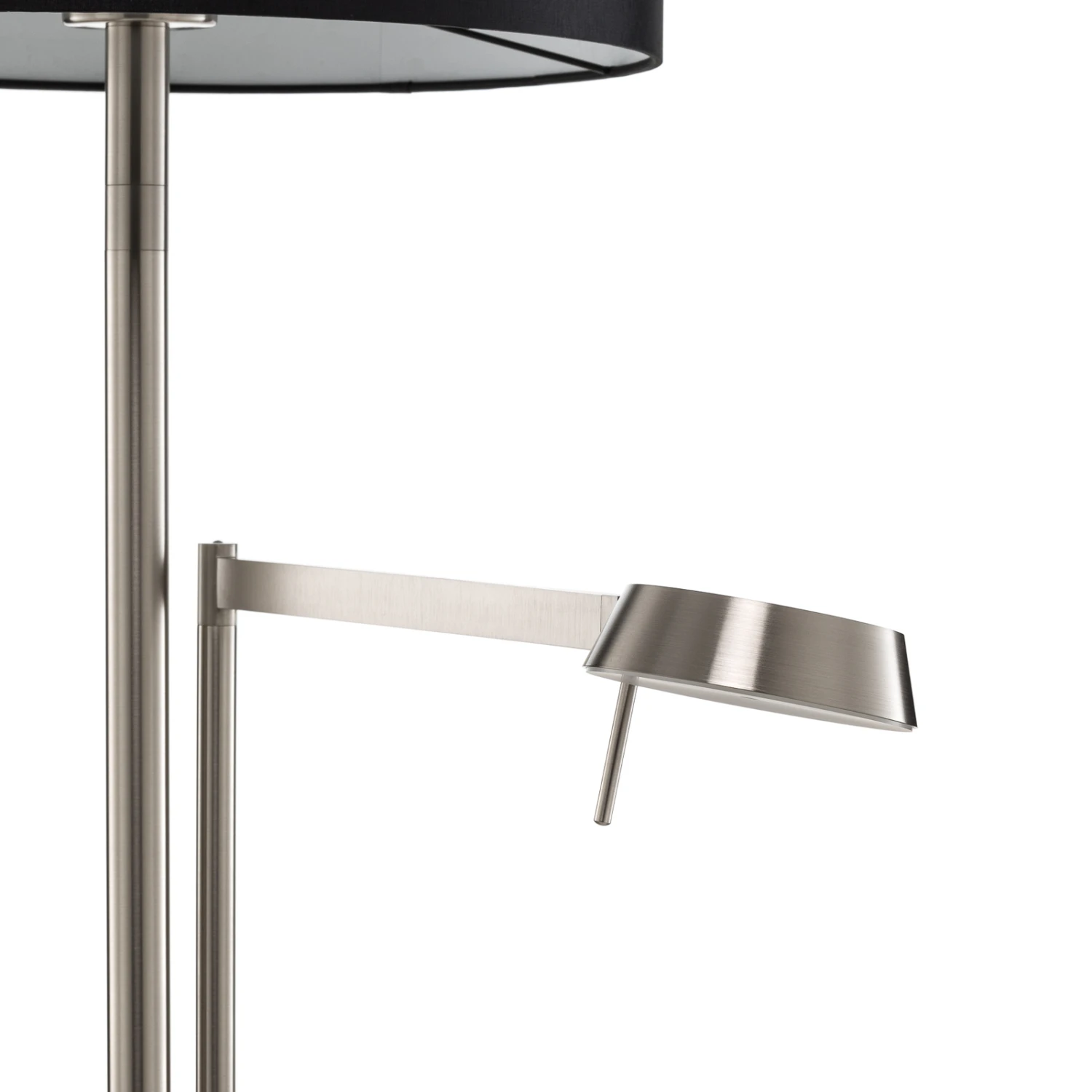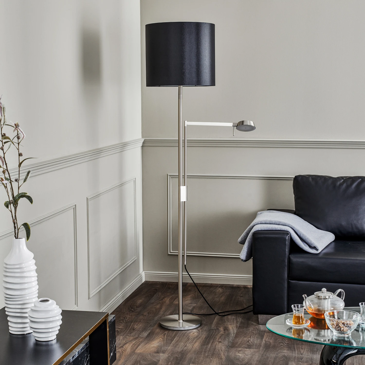 Lampadaire Phelandis fabriqué en Allemagne avec abat-jour en tissu noir et lampe de lecture latérale à LED