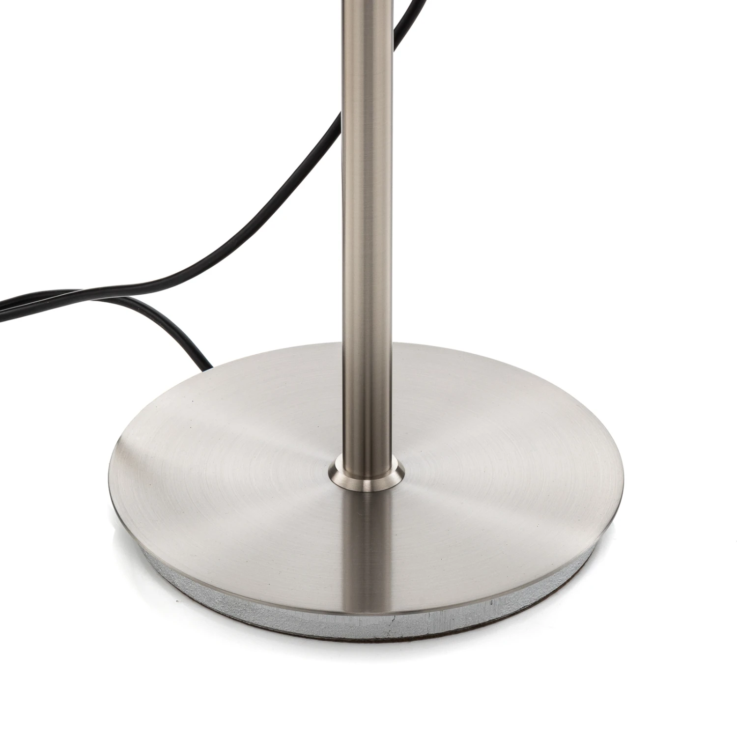 Phelandis est un produit d’éclairage raffiné avec un abat-jour cylindrique en tissu noir et un bras de lecture latéral alimenté par des LED, réglable en hauteur de 90 cm à 140 cm et également pivotant, ce qui permet de l’orienter de manière optimale afin de disposer d’une lumière ciblée pour la lecture. Deux variateurs à touche sont intégrés, ce qui permet de faire varier l’intensité des deux sources lumineuses en continu et individuellement. L’abat-jour noir éblouit davantage la lumière et assure ainsi une lumière d’accentuation particulièrement agréable le soir. Les éléments métalliques en nickel mat offrent un agréable contraste avec l’abat-jour noir.