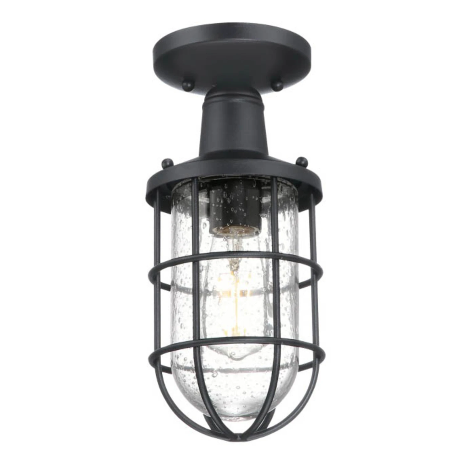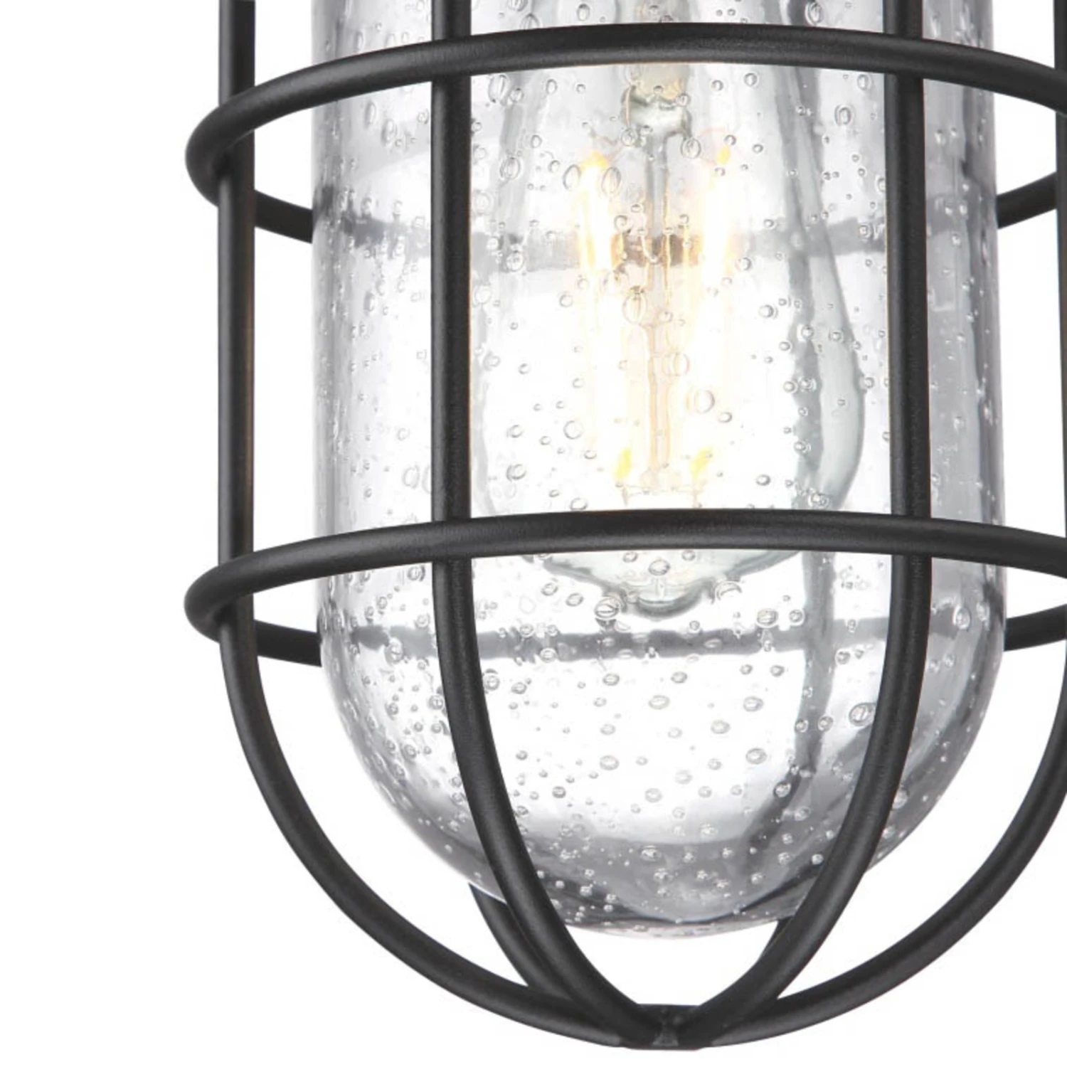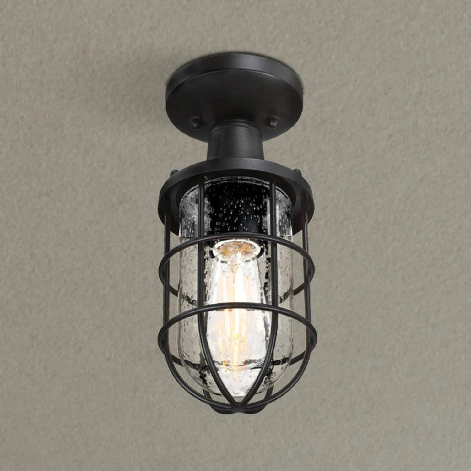 Plafonnier d’extérieur Crestview en forme de cage en acier et verre antique soufflé à la bouche